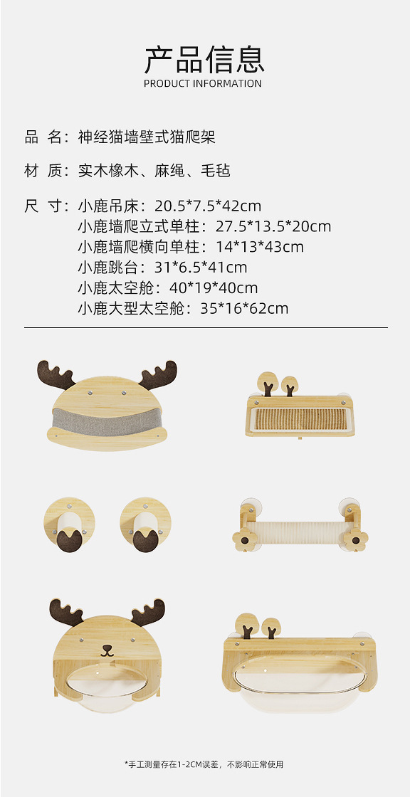 • 공중 6종 세트 [새끼 사슴 우주 캡슐 + 새끼 사슴 해먹 + 새끼 사슴 벽 등반 가로 단일 기둥 + 새끼 사슴 점프 플랫폼 + 새끼 사슴 벽 등반 수직 단일 기둥 * 2 + 새끼 사슴 대형 우주 캡슐]