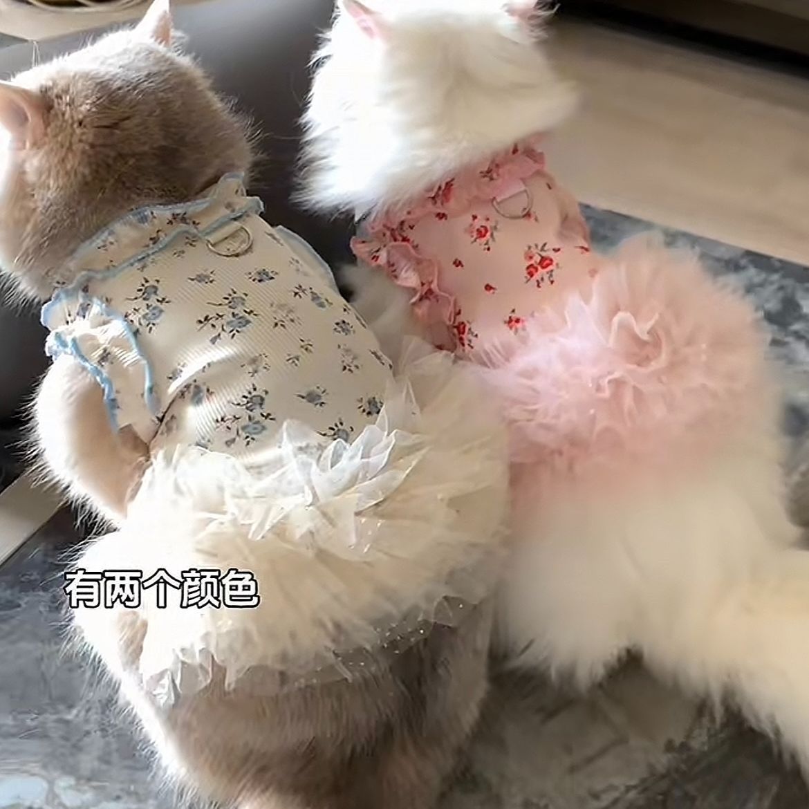 인터넷 연예인 같은 스타일 여름 새 애완 동물 공주 드레스 고양이 옷 발레 래그돌 고양이 골드 그라데이션 꽃 퍼프 스커트스토어 가기