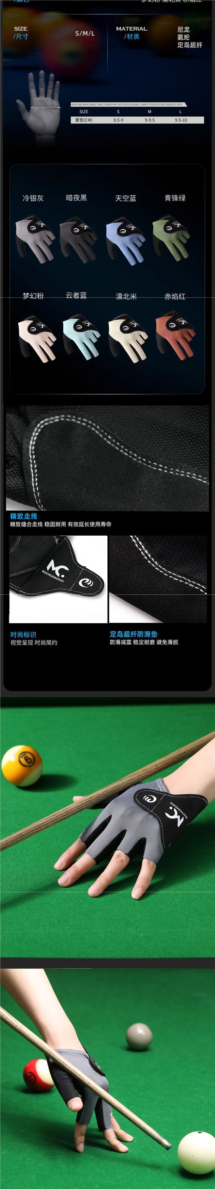 당구장갑, 반손가락, 전문가용 남녀공용, 땀흡수, 통기성, 속건성, 미끄럼방지, 왼손, 오른손, 스누커 전용