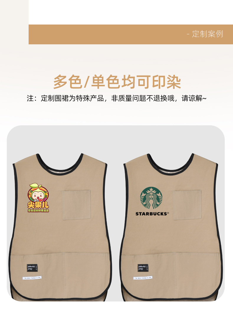 라운드 넥 커피 숍 밀크 티 숍 작업복 조끼 스타일 앞치마 웨이터 방수 및 내유성 맞춤 인쇄 로고스토어 가기