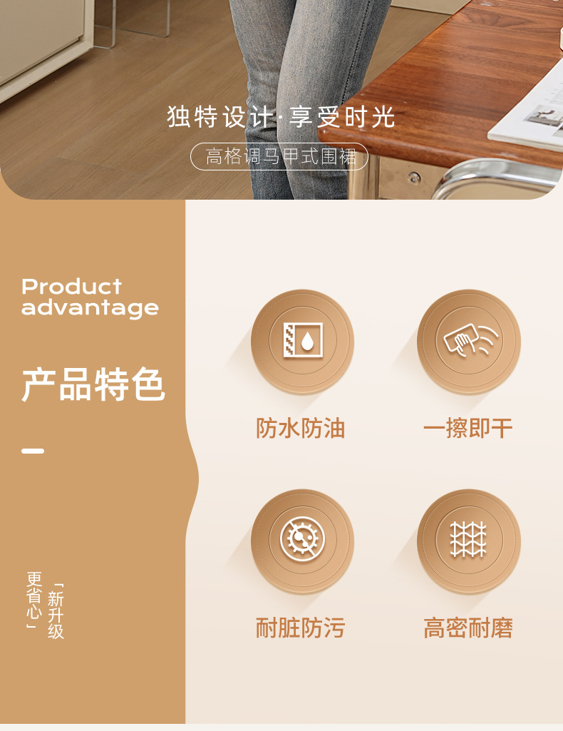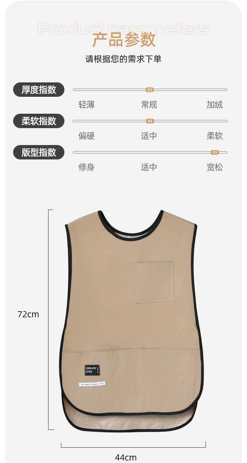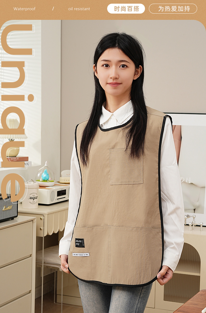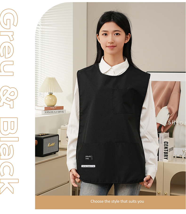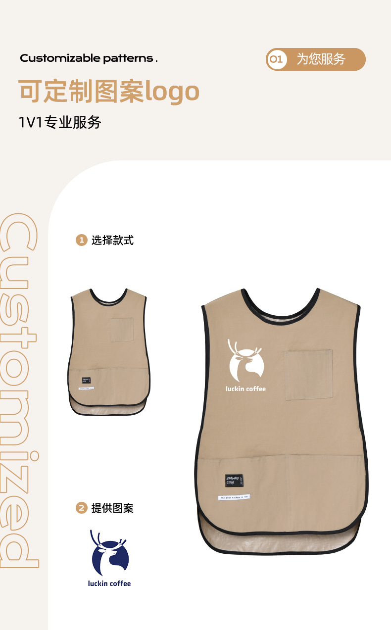 라운드 넥 커피 숍 밀크 티 숍 작업복 조끼 스타일 앞치마 웨이터 방수 및 내유성 맞춤 인쇄 로고