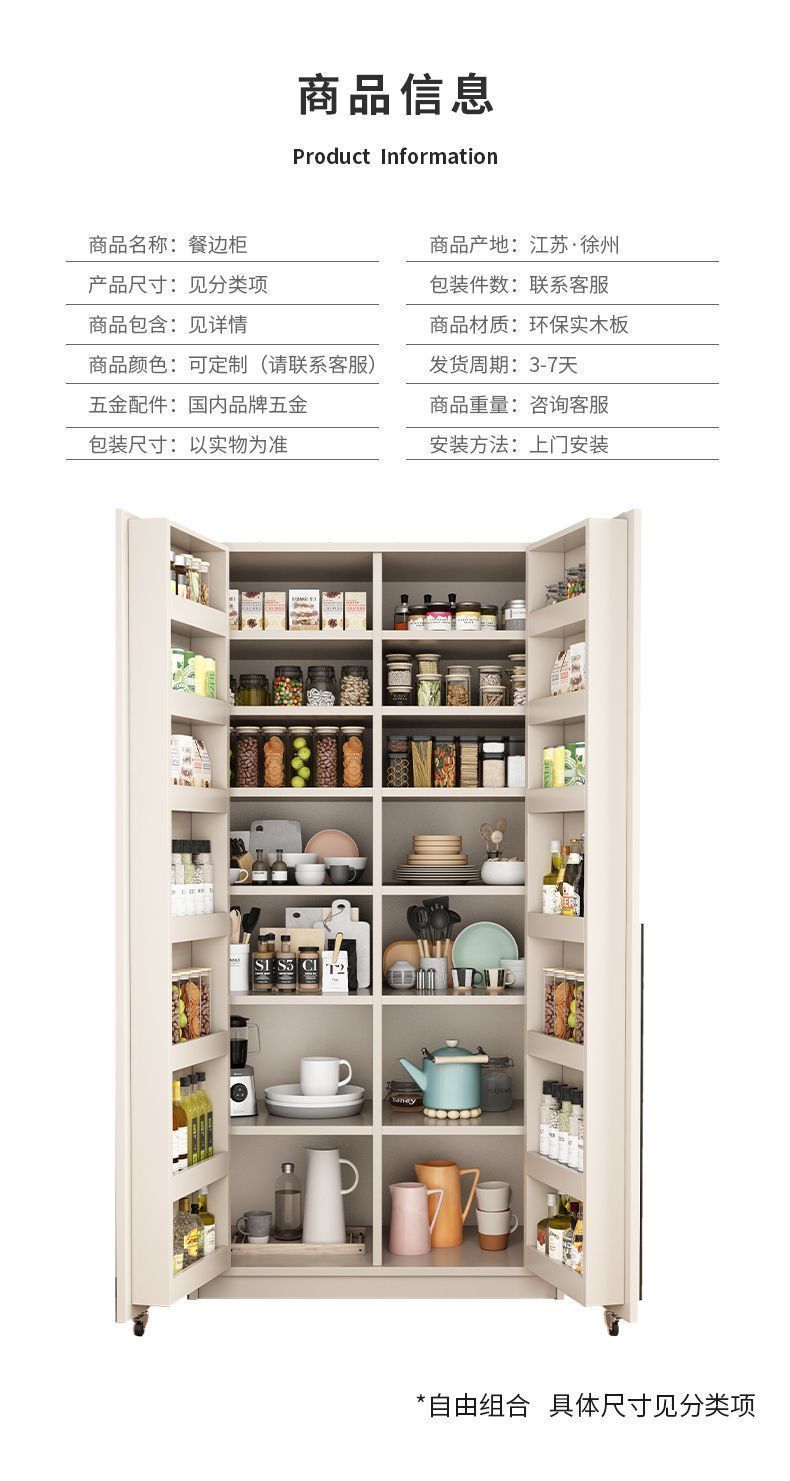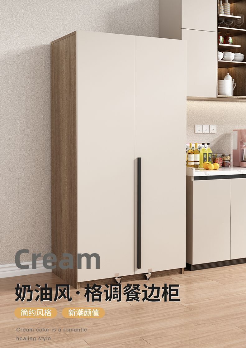 크림 스타일 찬장 통합 벽걸이형 가정용 높은 캐비닛 주방 보관 캐비닛 단단한 나무 스낵 캐비닛 보관 캐비닛스토어 가기