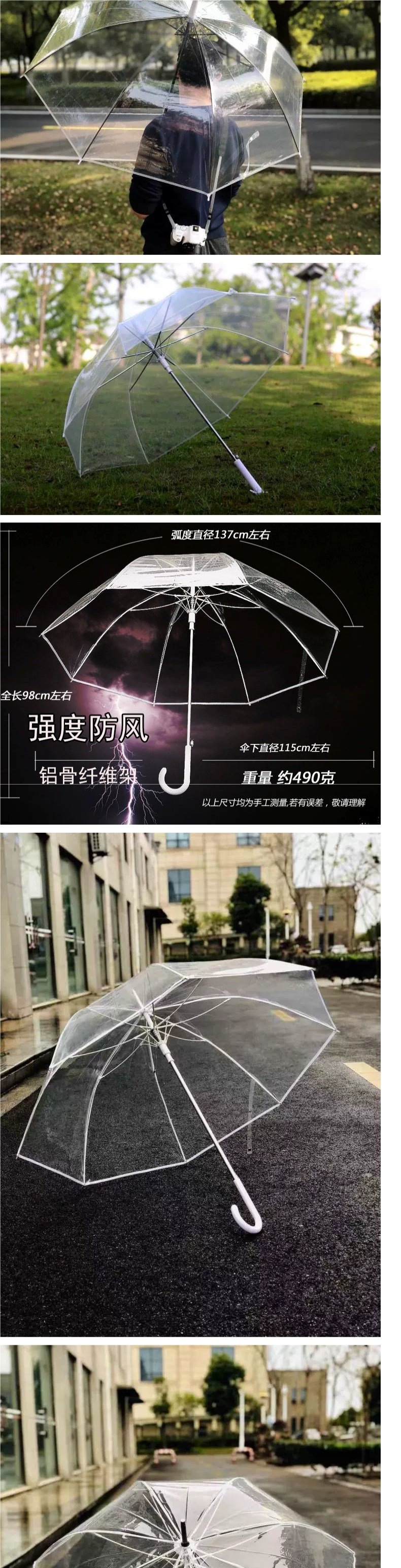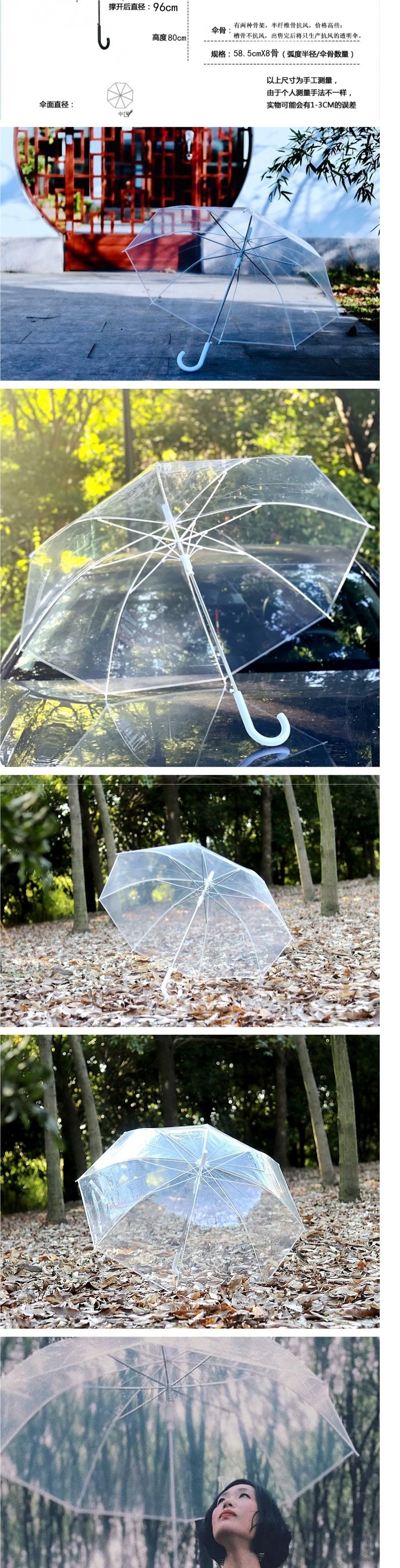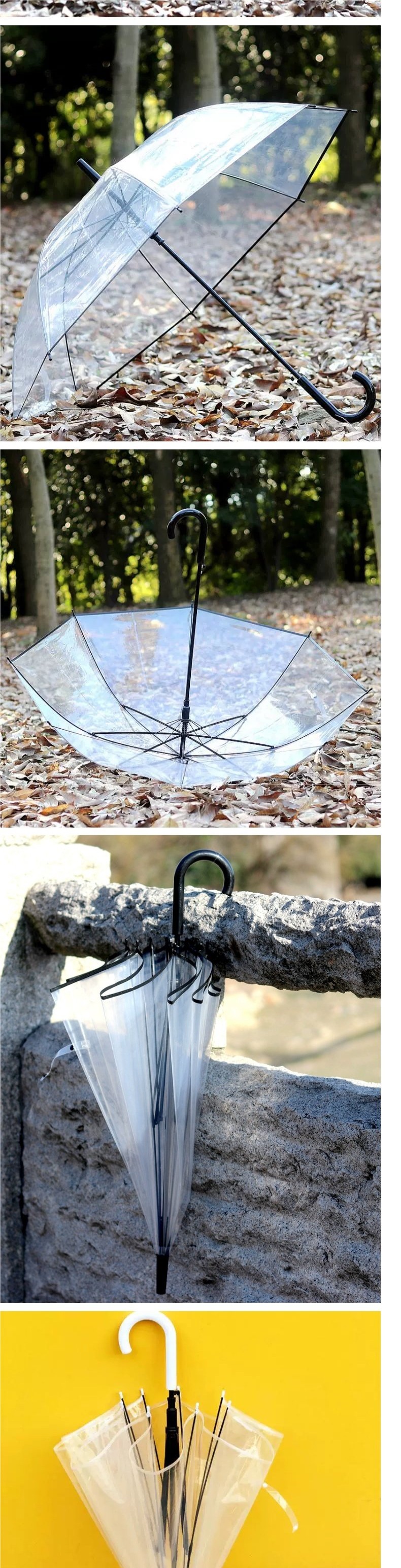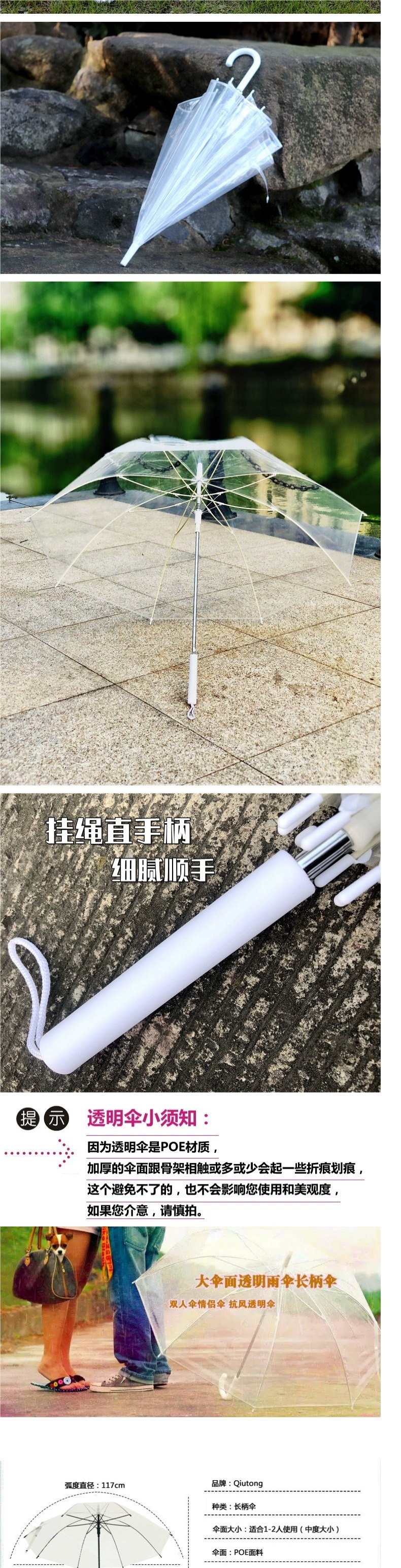 • 흰색 가장자리 아치형 투명 우산은 키가 1.3-1.65m인 사람들에게 적합합니다.