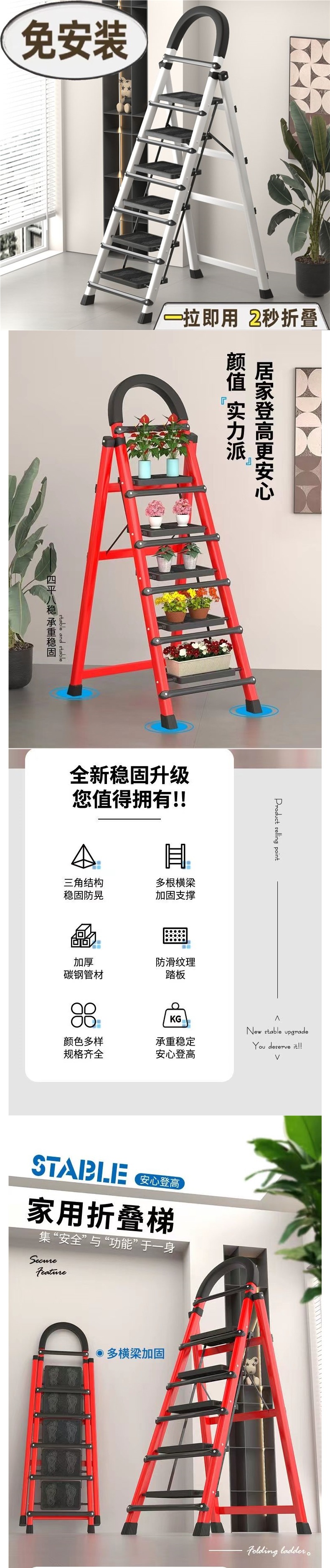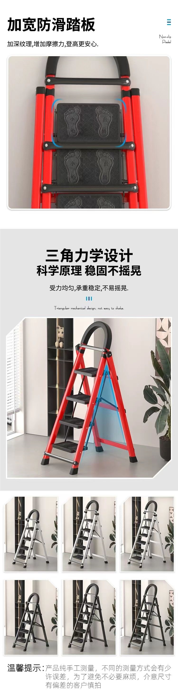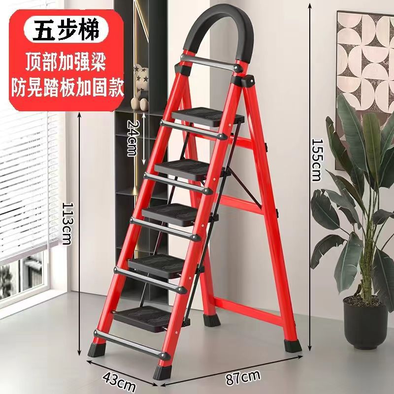 • 두꺼운 빨간색 4단 사다리 - 페달 전체 빔 보강