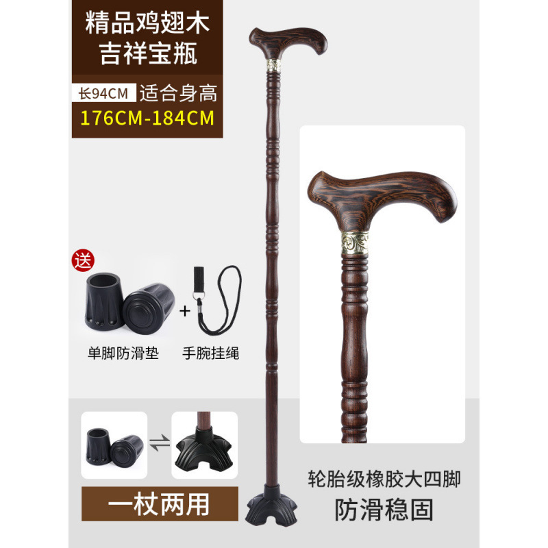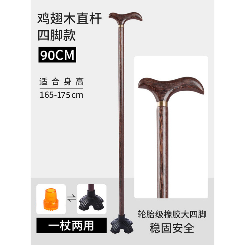 • 웬지 우드 4족 목발 90cm(두꺼운 미끄럼 방지 고무 커버 1개 포함) 165-175cm