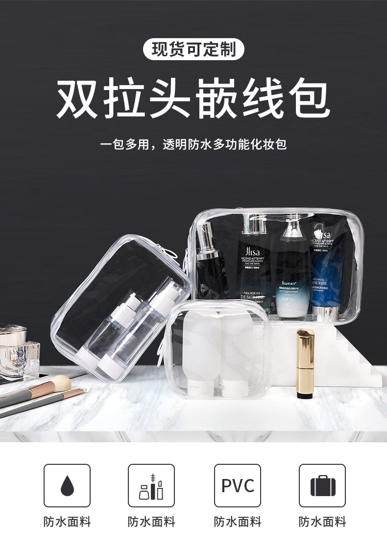 여행 필수 휴대용 세면 용품 가방 PVC 화장품 가방 투명 방수 다기능 화장품 보관 가방 사용자 정의스토어 가기