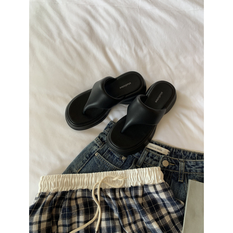 소가죽 버전! 여성용 슬리퍼 2025 신상 여름 아우터 비치 슬리퍼 캐주얼 두꺼운 밑창 샌들스토어 가기