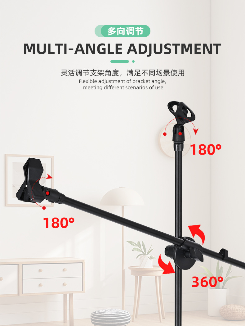 마이크 스탠드 삼각대 바닥 장착형 라이브 방송 휴대폰 스탠드 마이크 스탠드 조절식 텔레스코픽 금속 마이크 스탠드