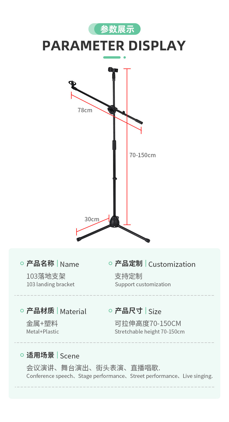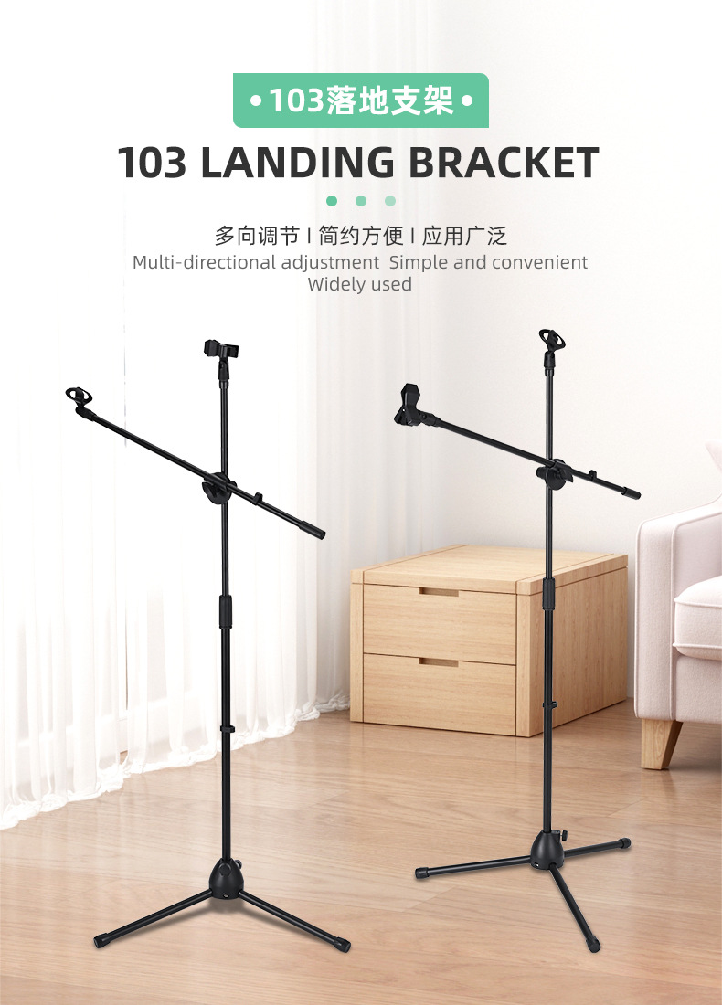 마이크 스탠드 삼각대 바닥 장착형 라이브 방송 휴대폰 스탠드 마이크 스탠드 조절식 텔레스코픽 금속 마이크 스탠드스토어 가기
