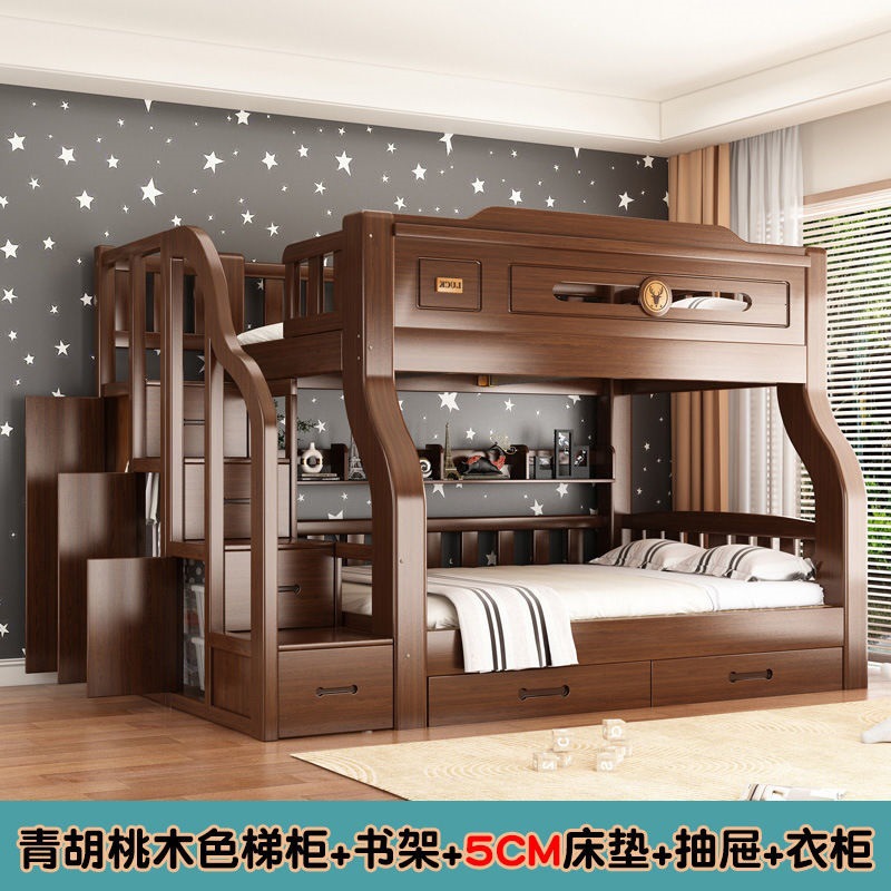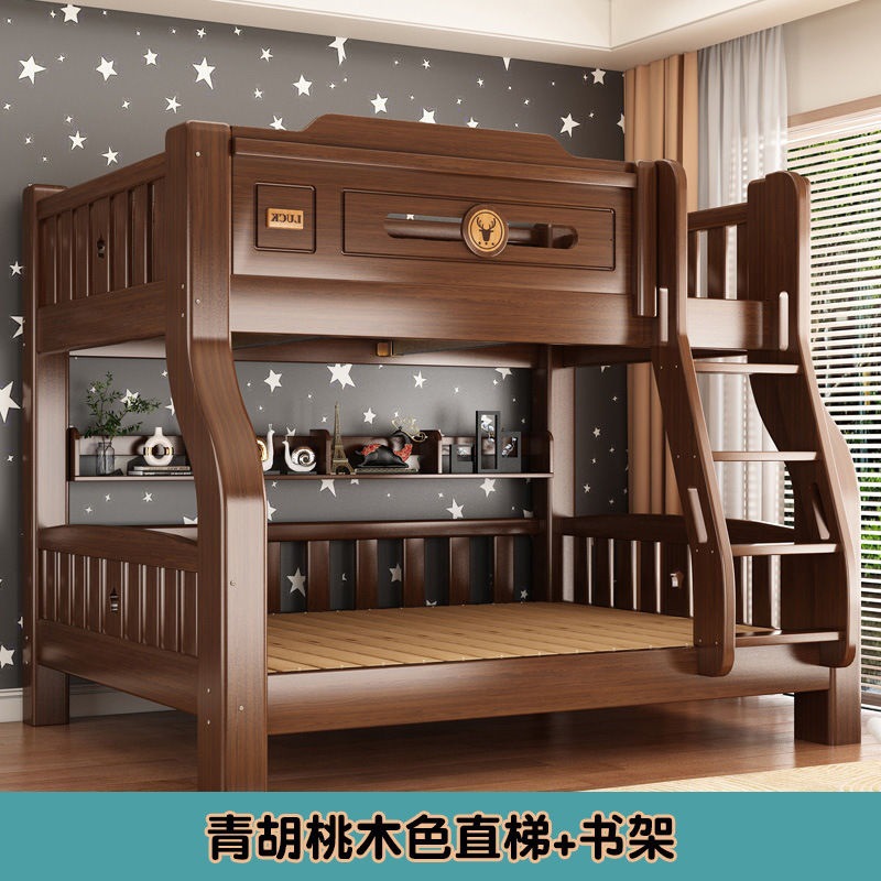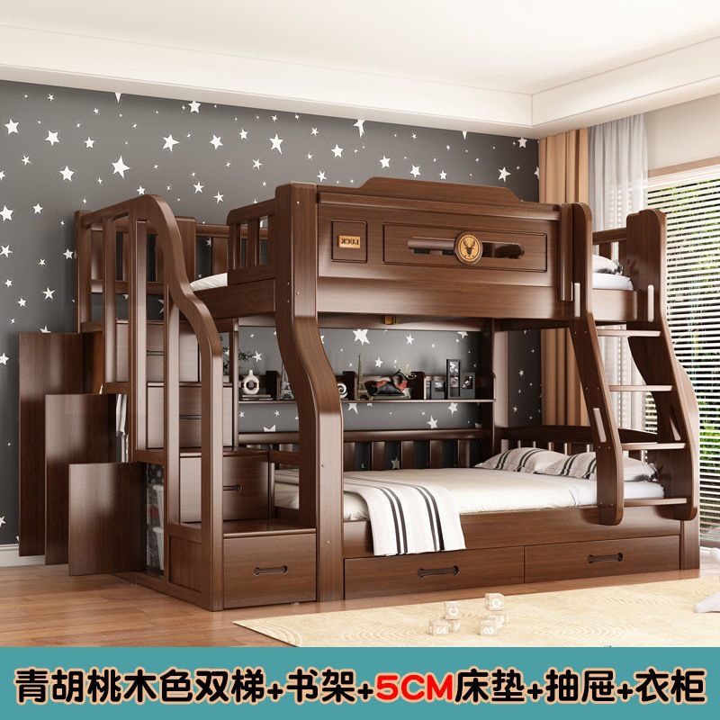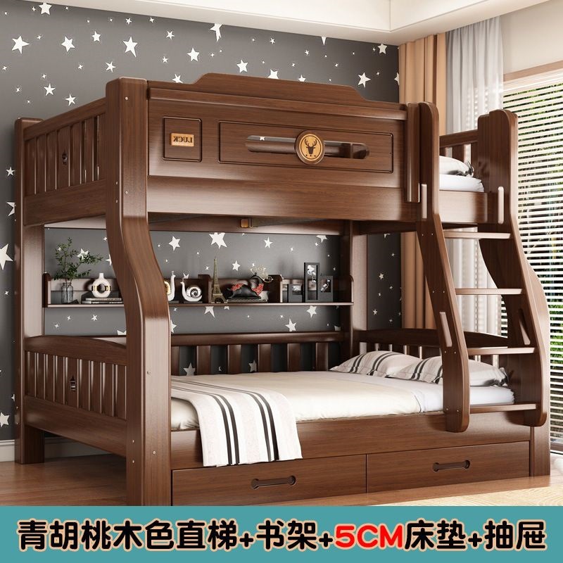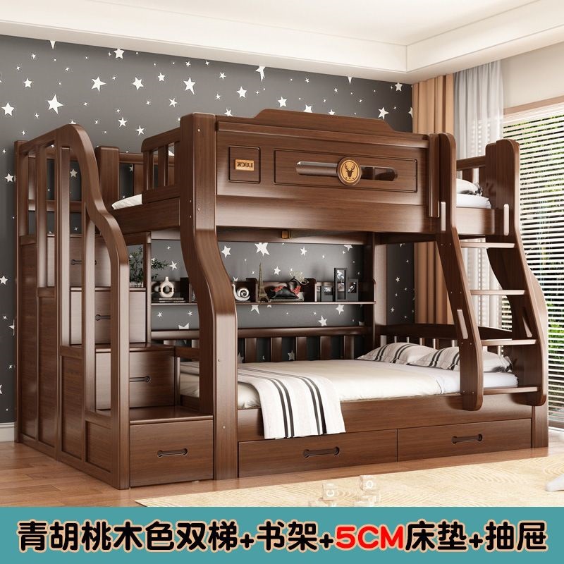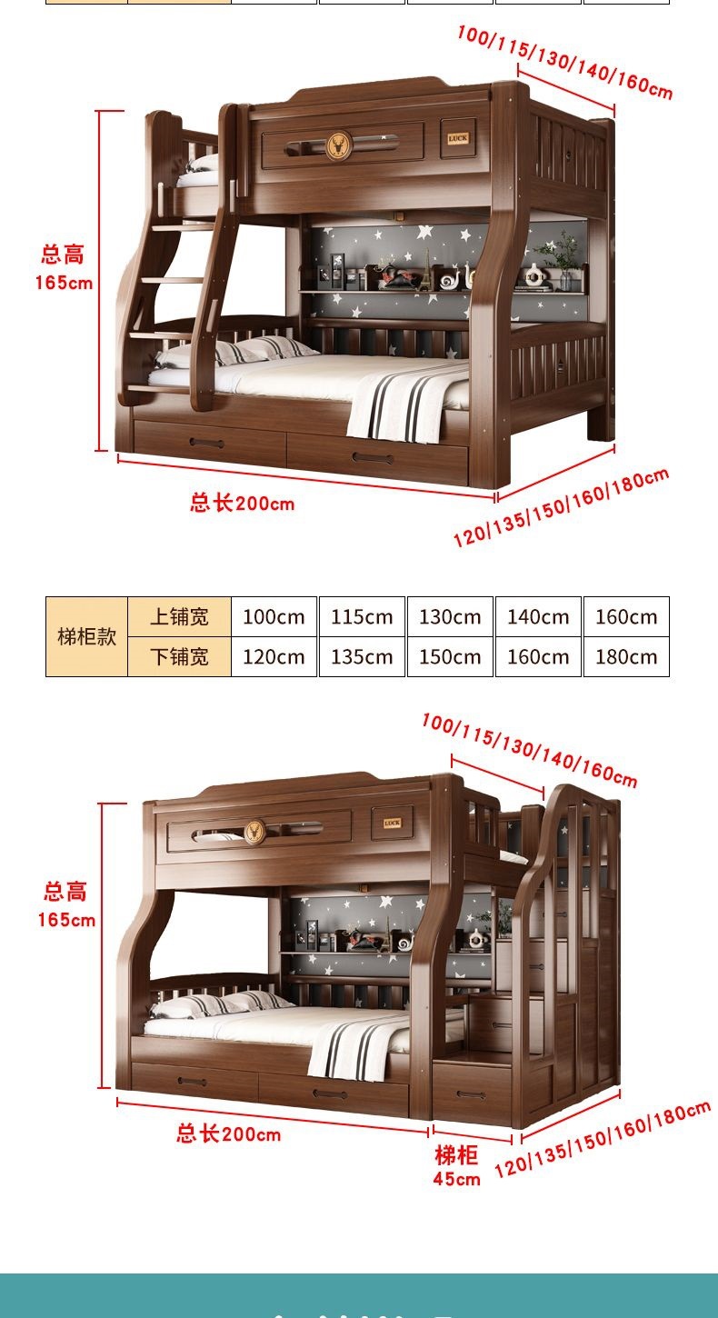 단단한 나무 두꺼운 이층 침대 반 높이 침대 어린이 이층 침대 가정용 다기능 높낮이 침대 기숙사 이층 침대