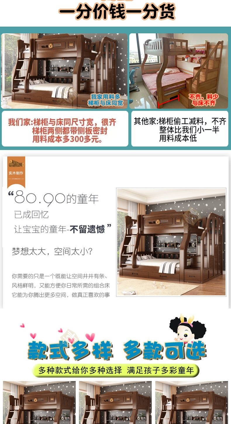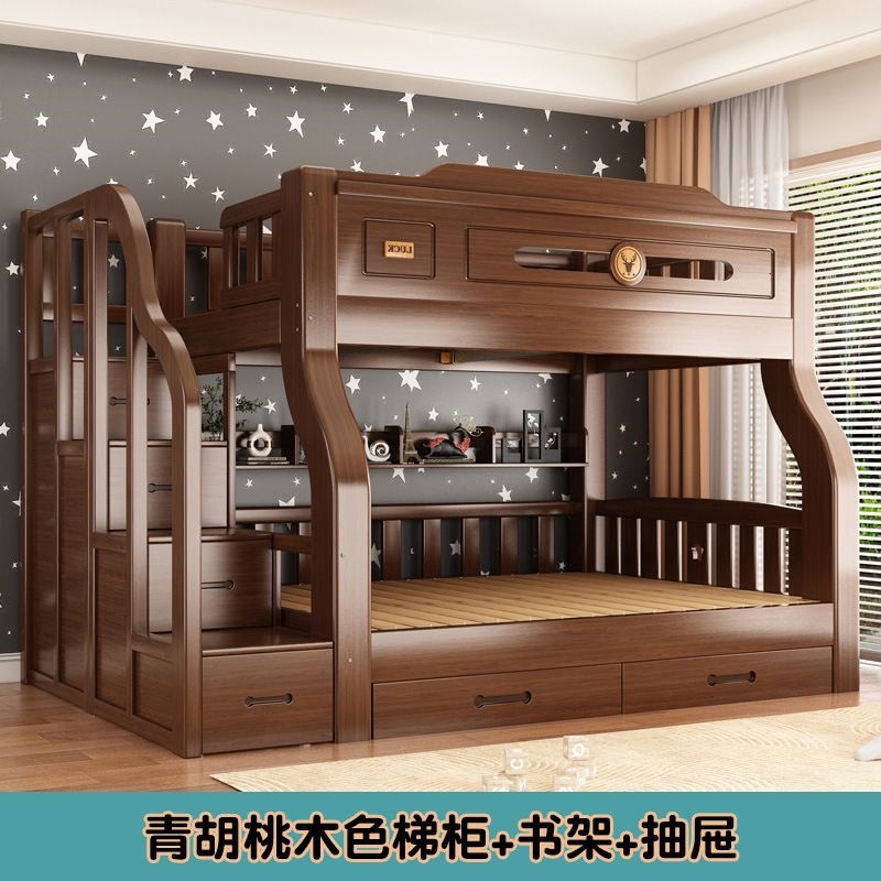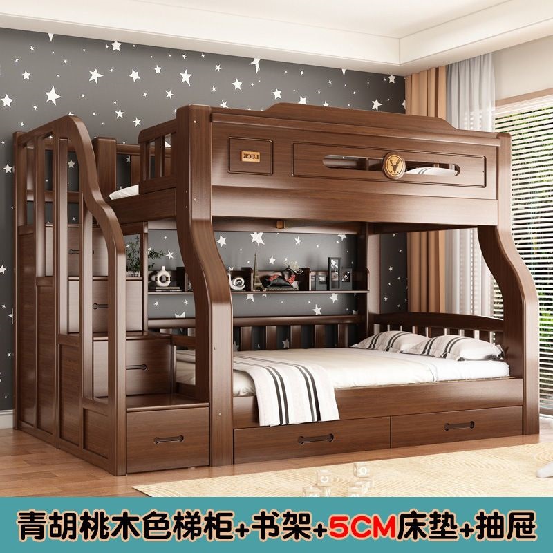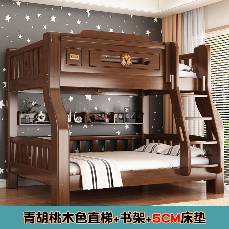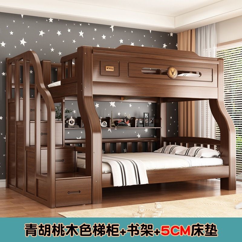 단단한 나무 두꺼운 이층 침대 반 높이 침대 어린이 이층 침대 가정용 다기능 높낮이 침대 기숙사 이층 침대