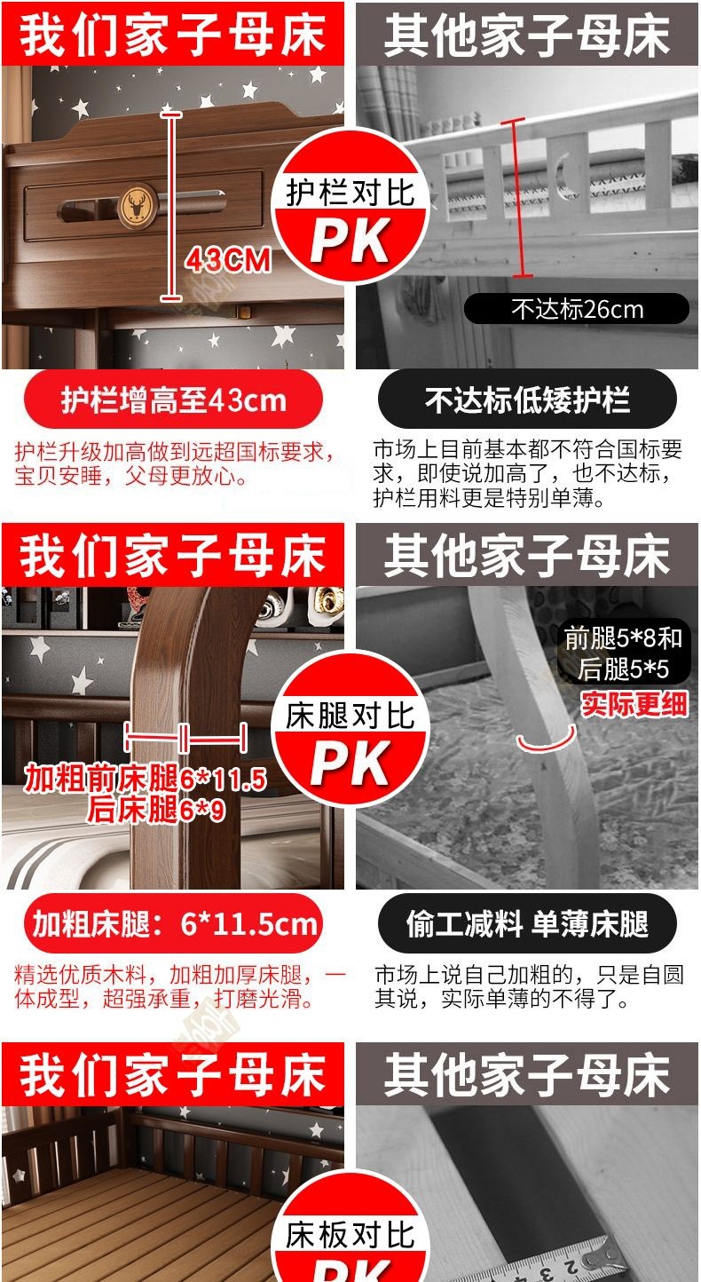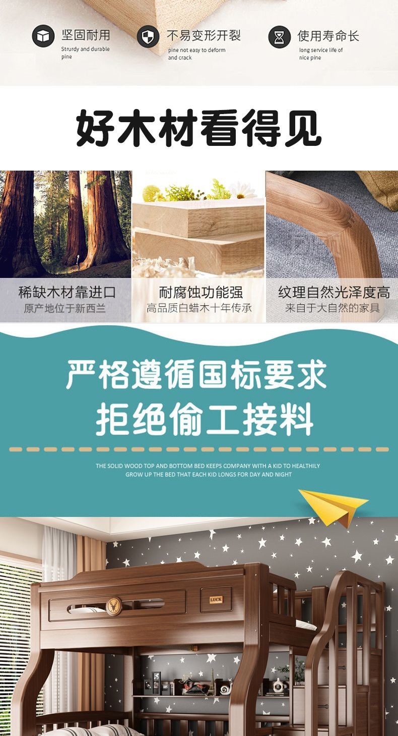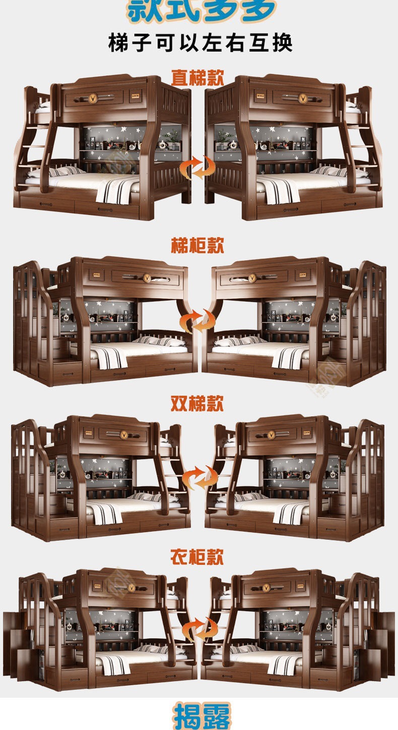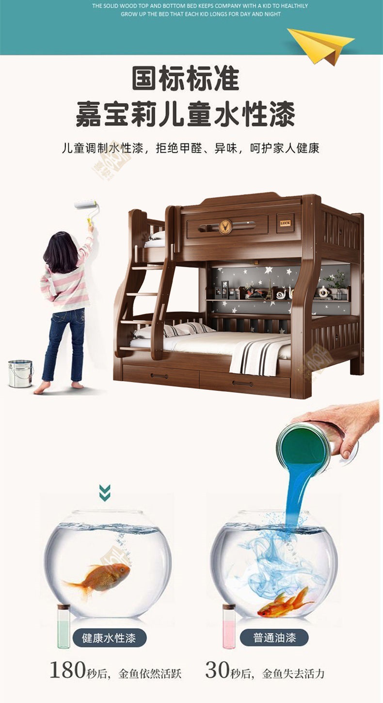 단단한 나무 두꺼운 이층 침대 반 높이 침대 어린이 이층 침대 가정용 다기능 높낮이 침대 기숙사 이층 침대