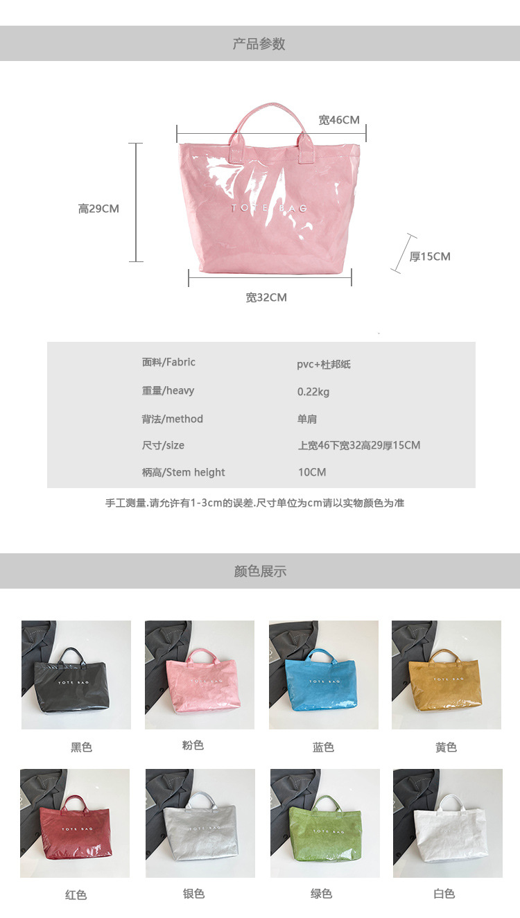 국경 간 대용량 듀퐁 종이 토트 백 패션 핸드백 간단한 크래프트 종이 숄더백 휴대용 쇼핑백