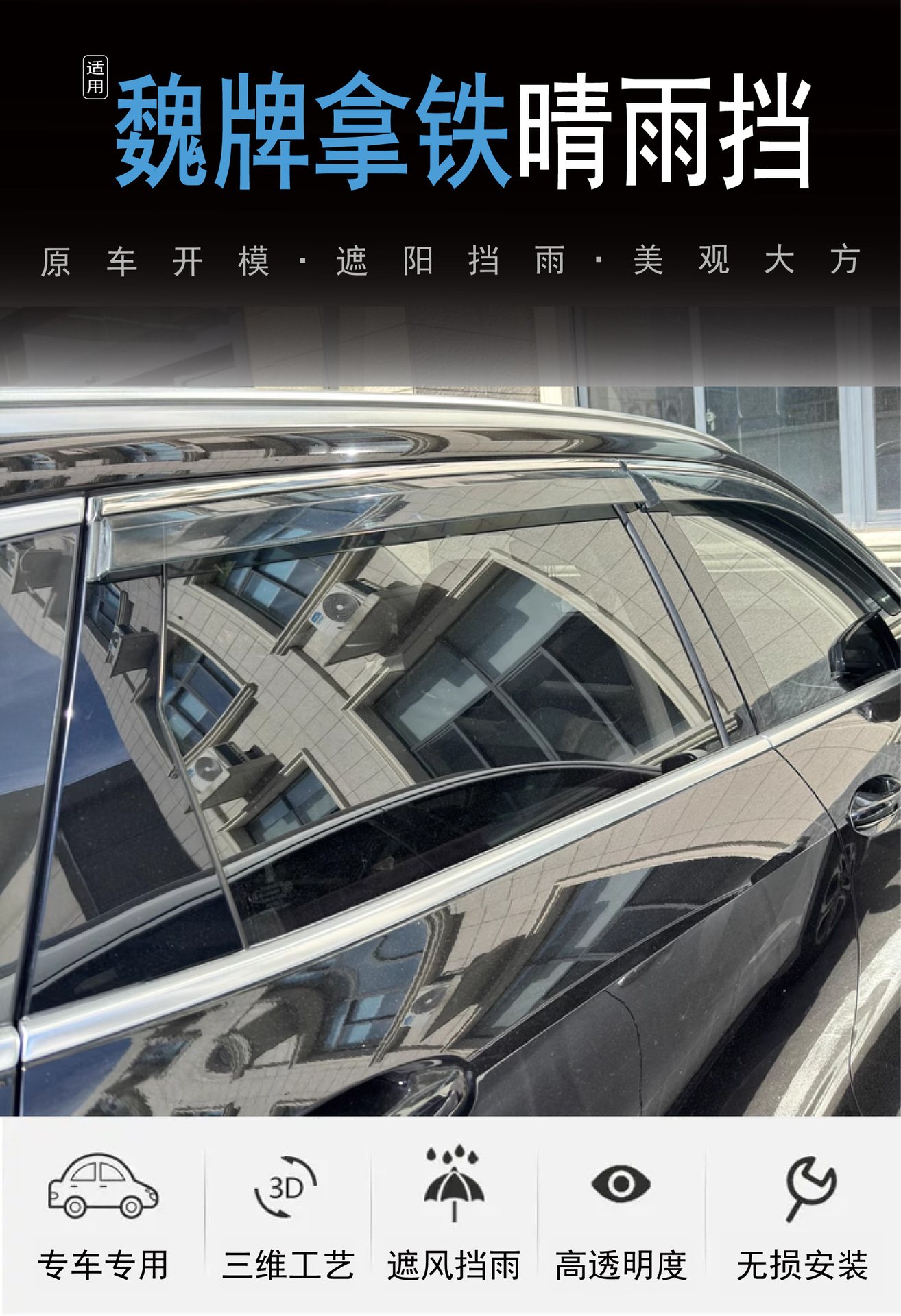 2022 Wei 브랜드 라떼 자동차 창 차단 및 비 방지 아크릴 Wei 브랜드 자동차 비 차단 장치에 대한 국경 간 적용