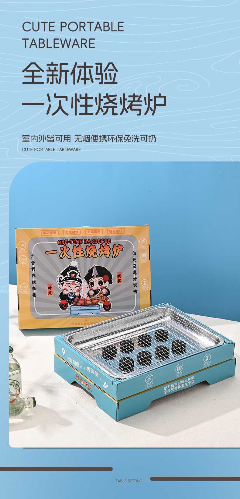 야외 일회용 바베큐 그릴 프레임 휴대용 꼬치 요리 세트 홈 실내 무연 과일 숯 팀 빌딩 바베큐스토어 가기
