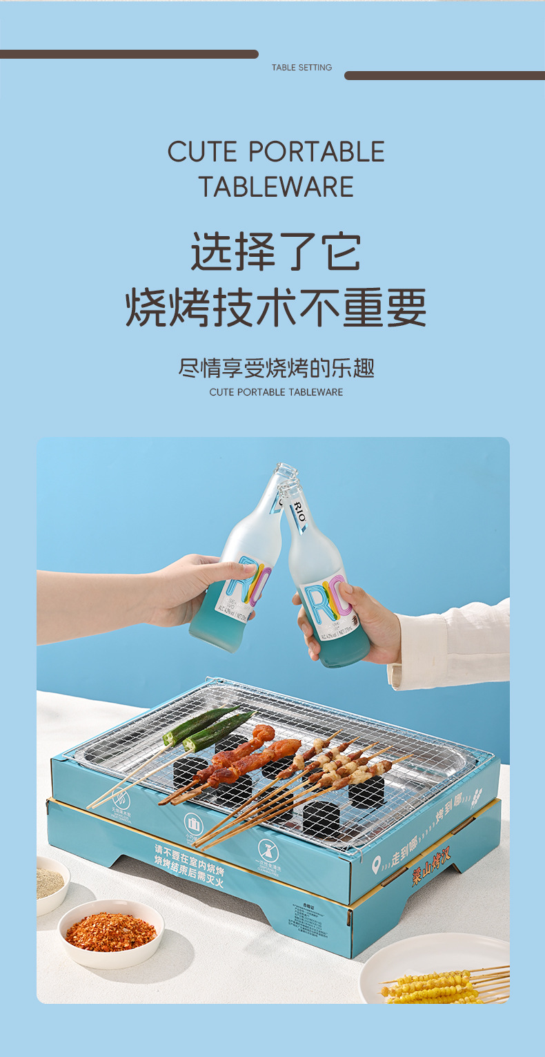 야외 일회용 바베큐 그릴 프레임 휴대용 꼬치 요리 세트 홈 실내 무연 과일 숯 팀 빌딩 바베큐