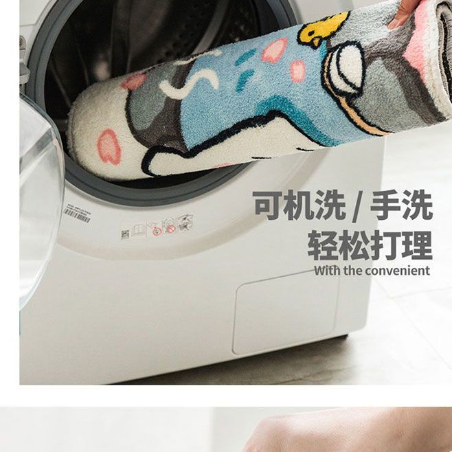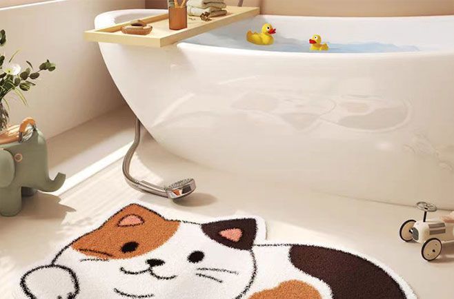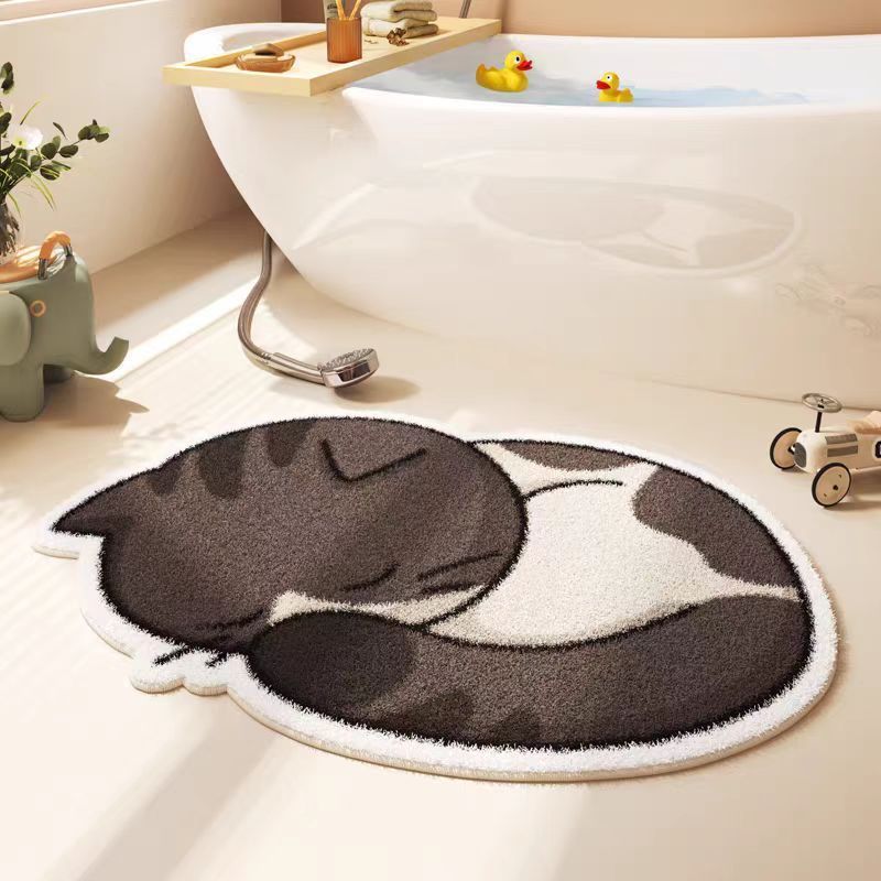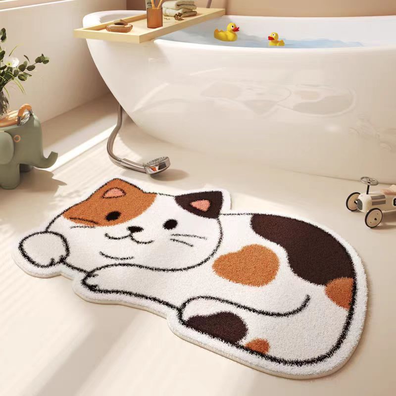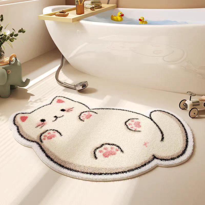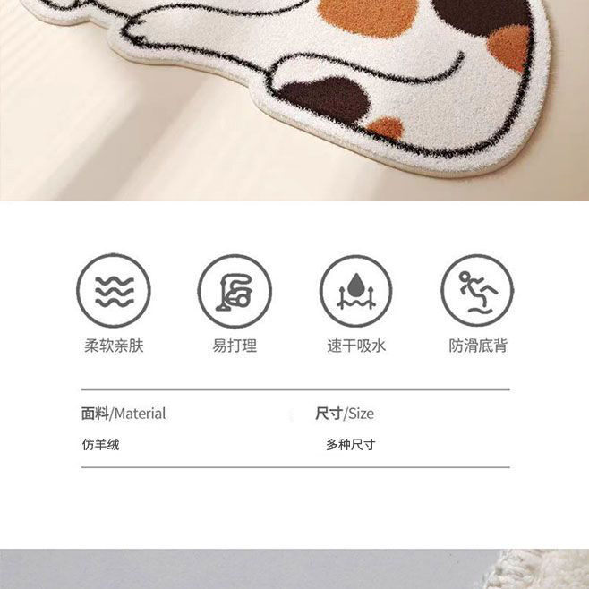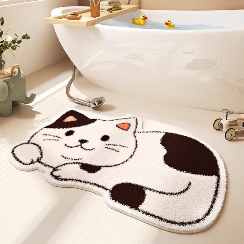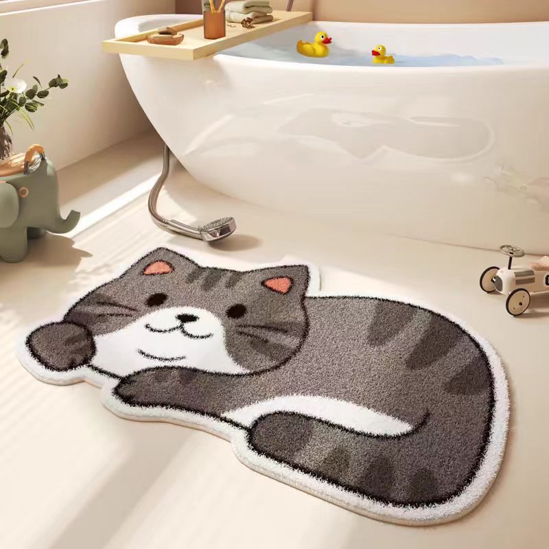 만화 고양이 모조 캐시미어 바닥 매트, 두껍고 부드러운 미끄럼 방지 매트, 얼룩 방지 및 관리가 쉬운 욕실 바닥 매트, 거실 바닥 매트스토어 가기