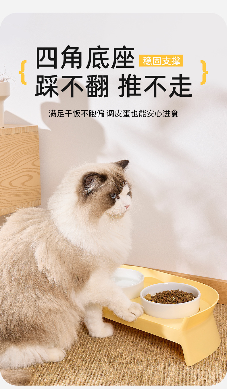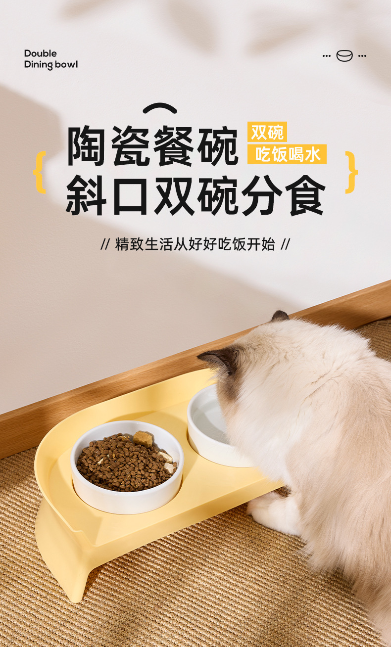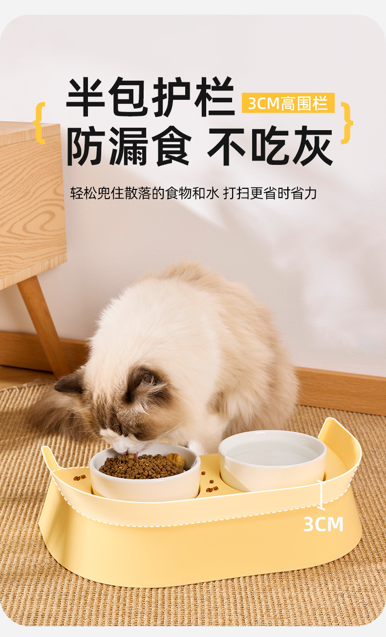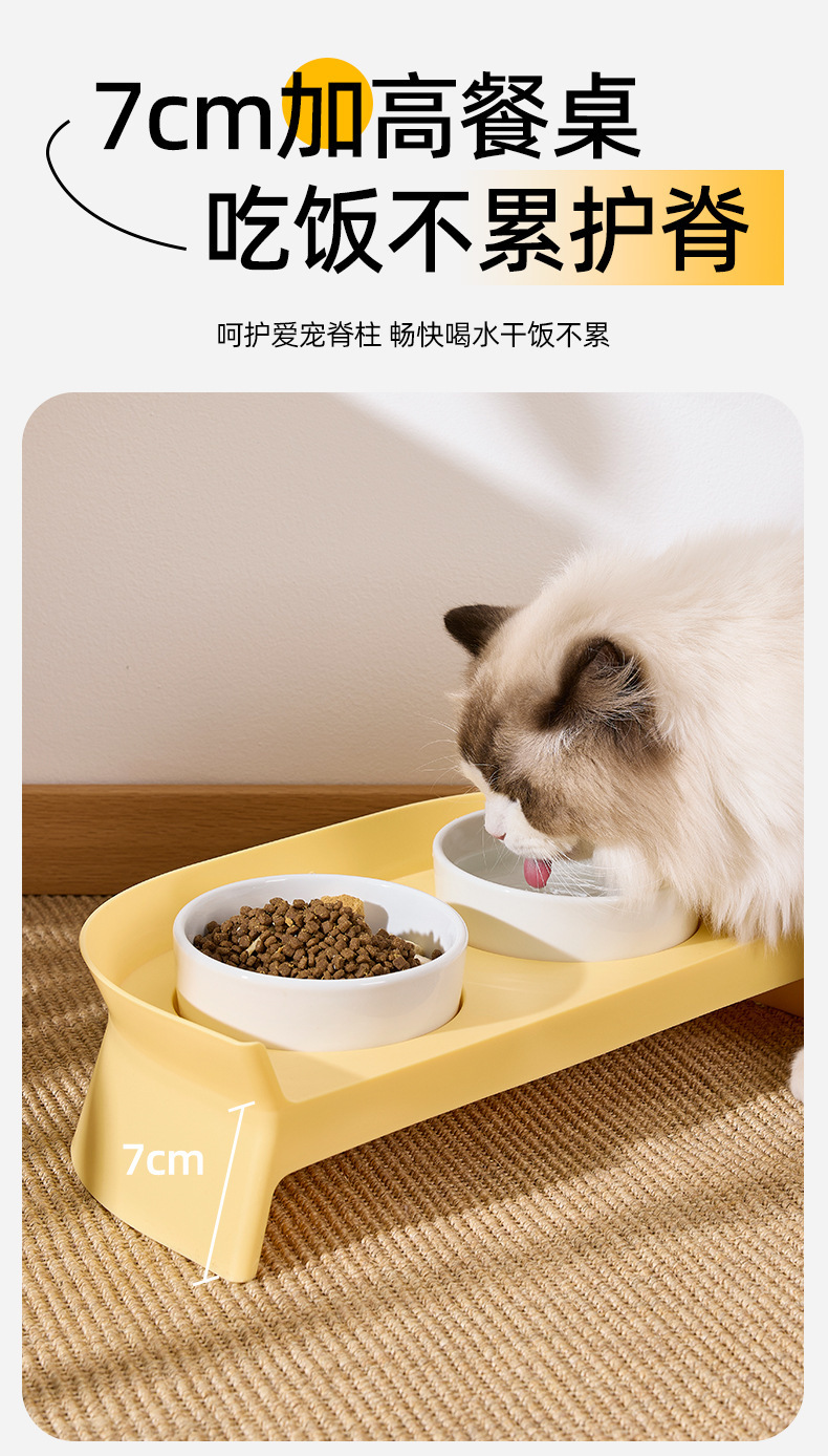 고양이 그릇, 이중 그릇, 세라믹 보호 경추 고양이 먹이 그릇, 고양이 밥 그릇, 소형 개 그릇, 식수 일체형 고양이 사료 그릇스토어 가기