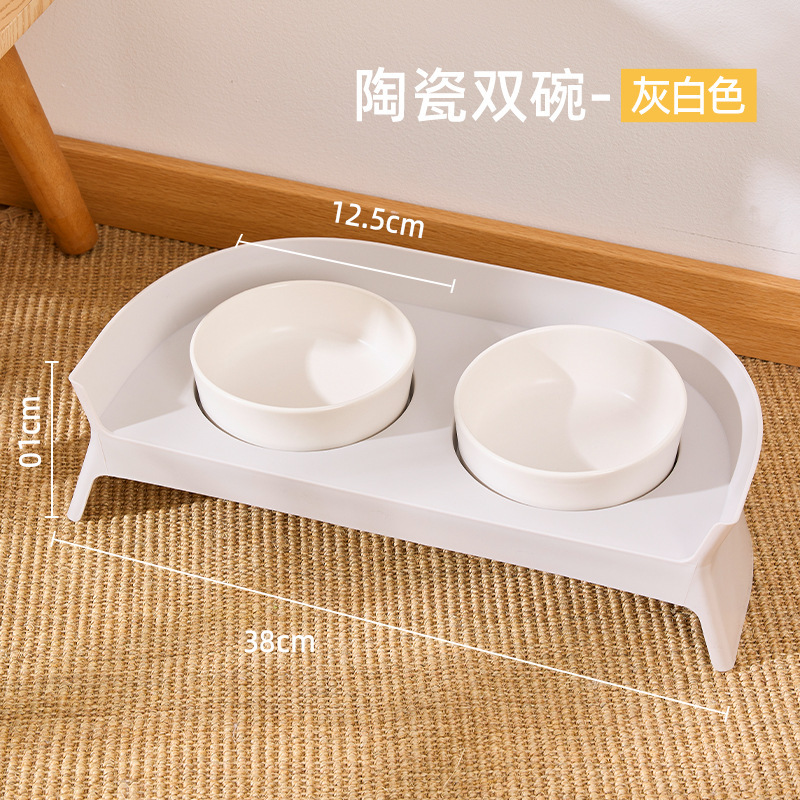 고양이 그릇, 이중 그릇, 세라믹 보호 경추 고양이 먹이 그릇, 고양이 밥 그릇, 소형 개 그릇, 식수 일체형 고양이 사료 그릇