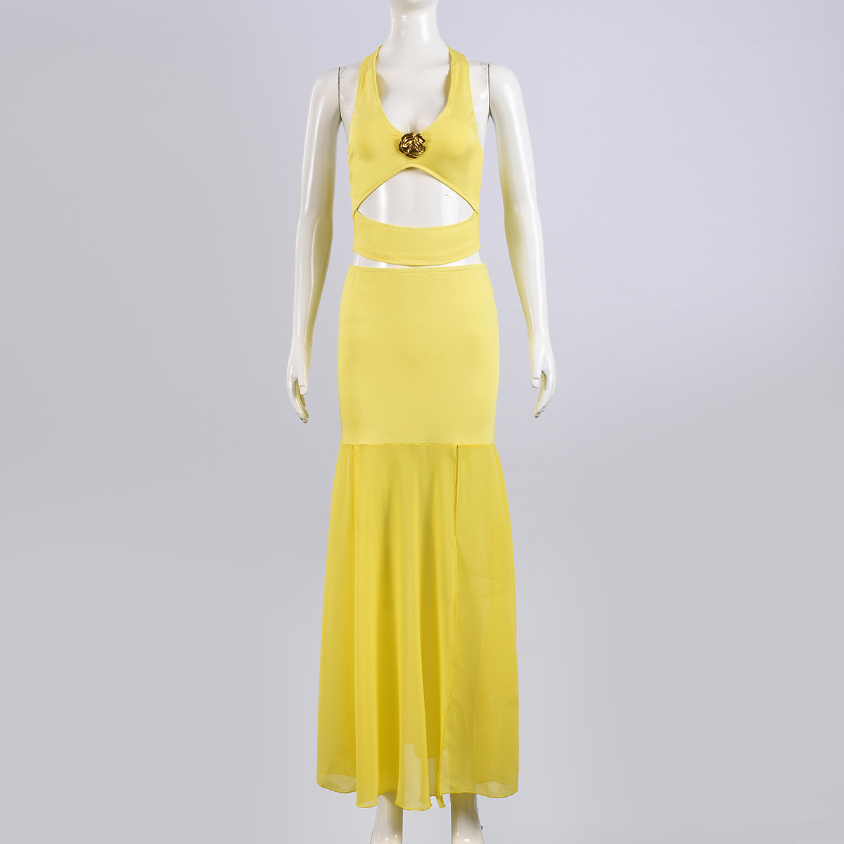 51866INS 섹시한 트렌디 핫걸 크로스보더 여성 의류 대외 무역 중공 섹시 탑 스플라이스 하프 롱 스커트 투피스 세트