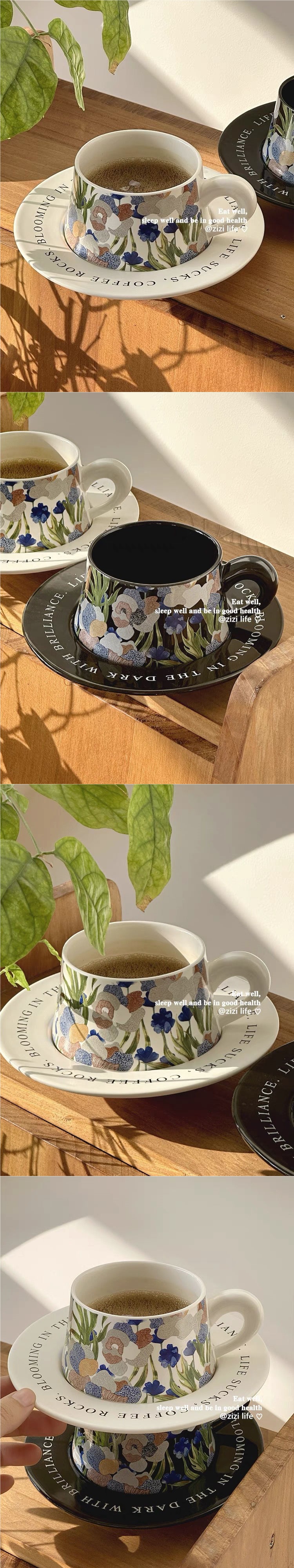 ins 복고풍 세라믹 커피 세트, 고급스럽고 스타일리시한 가정용 고가치 우유 컵 틈새 시장스토어 가기