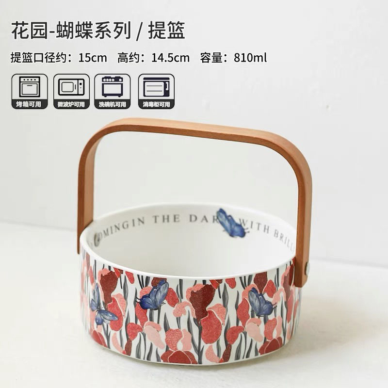• 아이리스 핑크 나비 정원 - 나무 손잡이 바구니