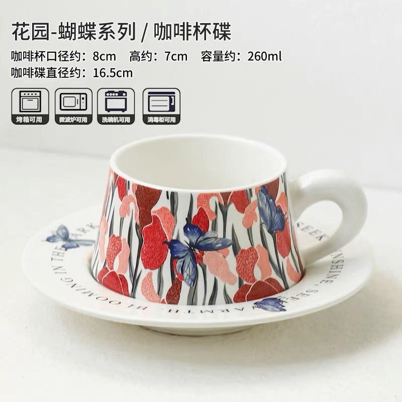 • 아이리스 핑크 나비/커피 컵과 접시-프리 스푼