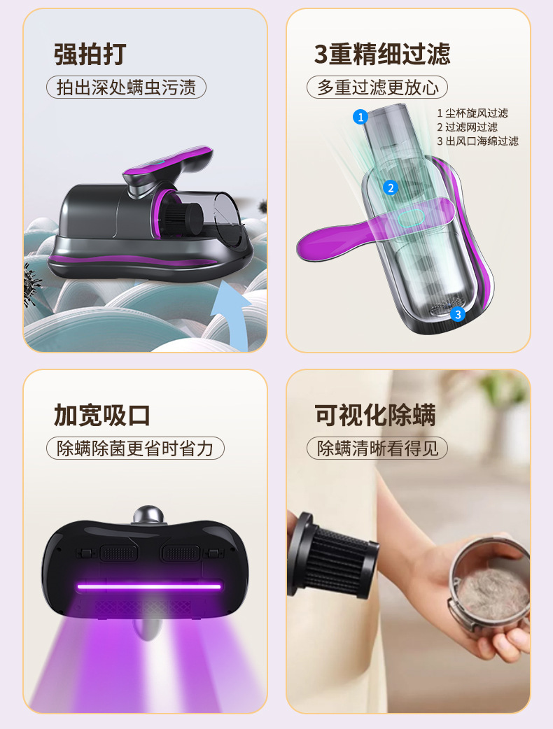 국경 간 새로운 가정용 전기 진드기 제거제 휴대용 무선 진공 청소기 매트리스 소파 진공 청소기 및 진드기 제거제