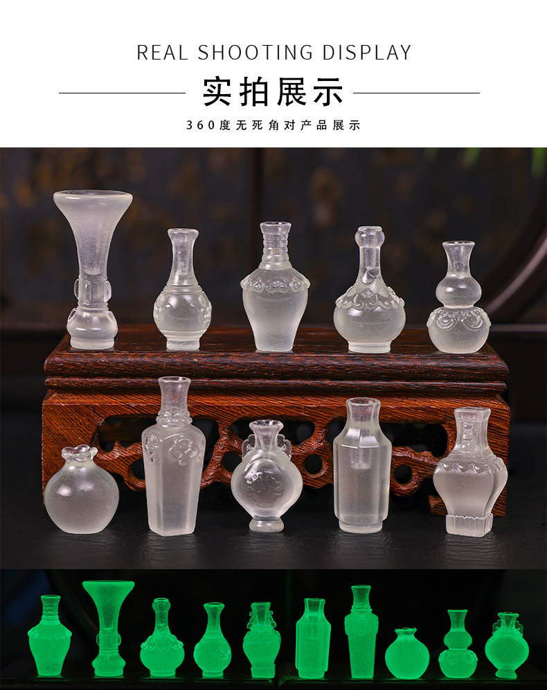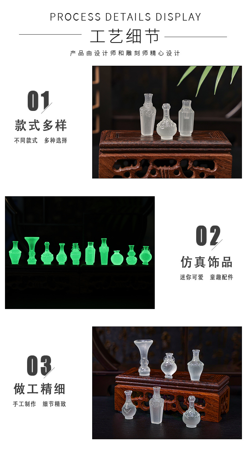 마이크로 풍경 장식품, 시뮬레이션 야광 꽃병, 홈 조경 수지 DIY 공예 장식, 작은 장식품, 고급 감각