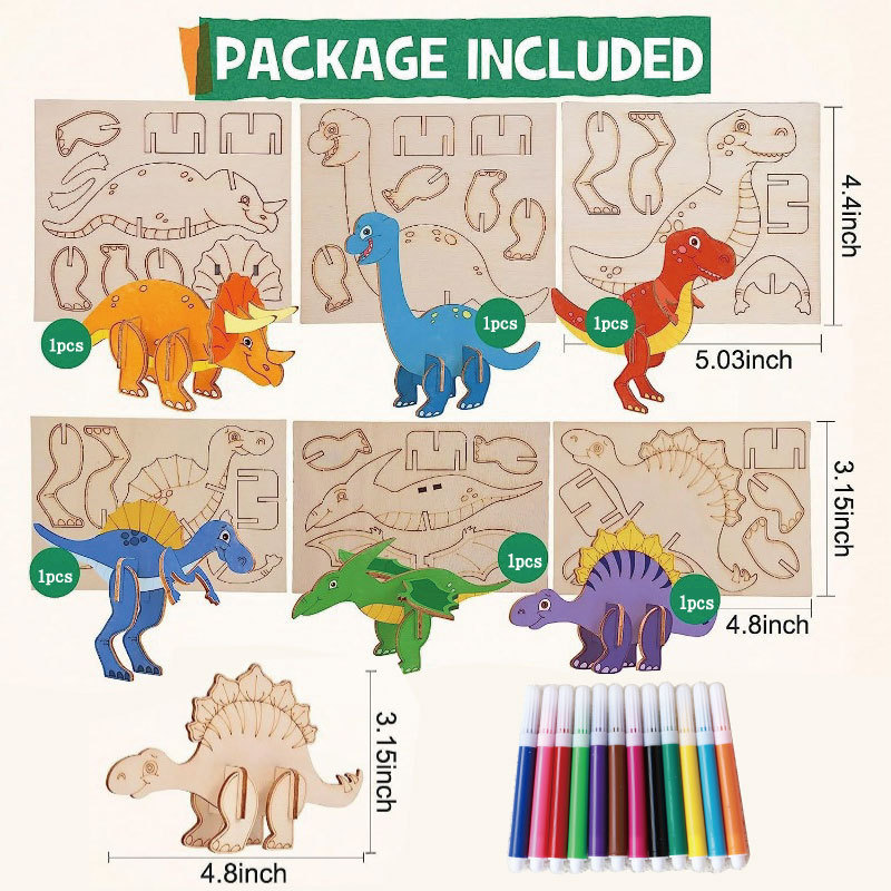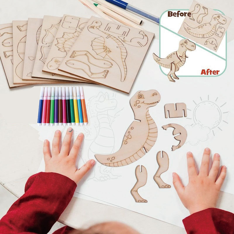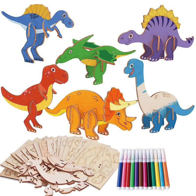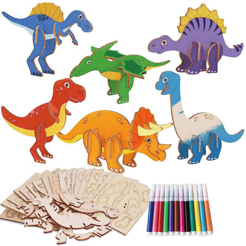 국경 간 나무 만화 공룡 퍼즐 세트 어린이를위한 미완성 공예 세트 생일 그림 장식품스토어 가기