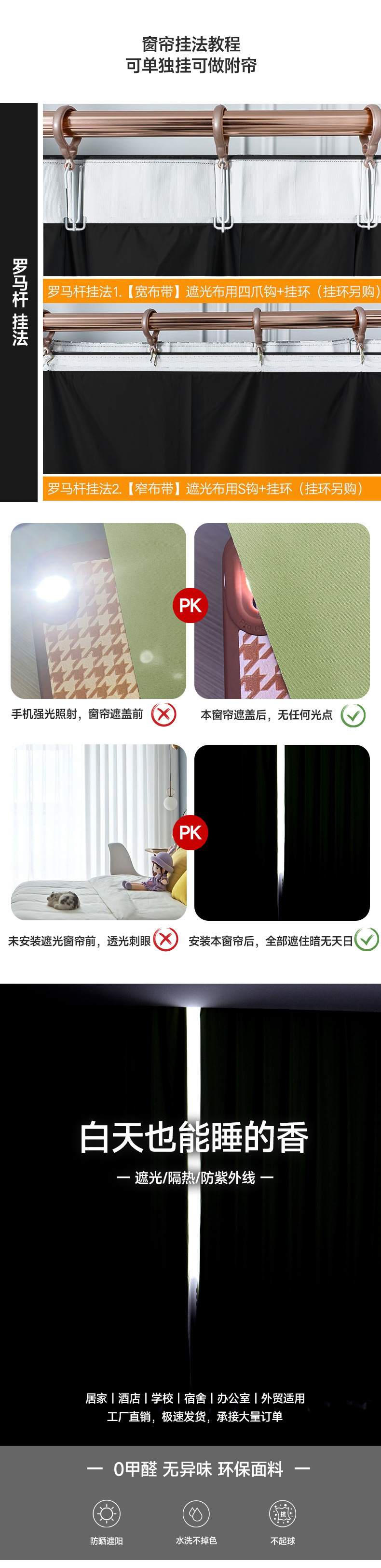 2025년 신형 완전 암막 커튼, 침실 완제품, 발코니 단열 및 자외선 차단 창, 펀칭 없이 간편한 커튼스토어 가기