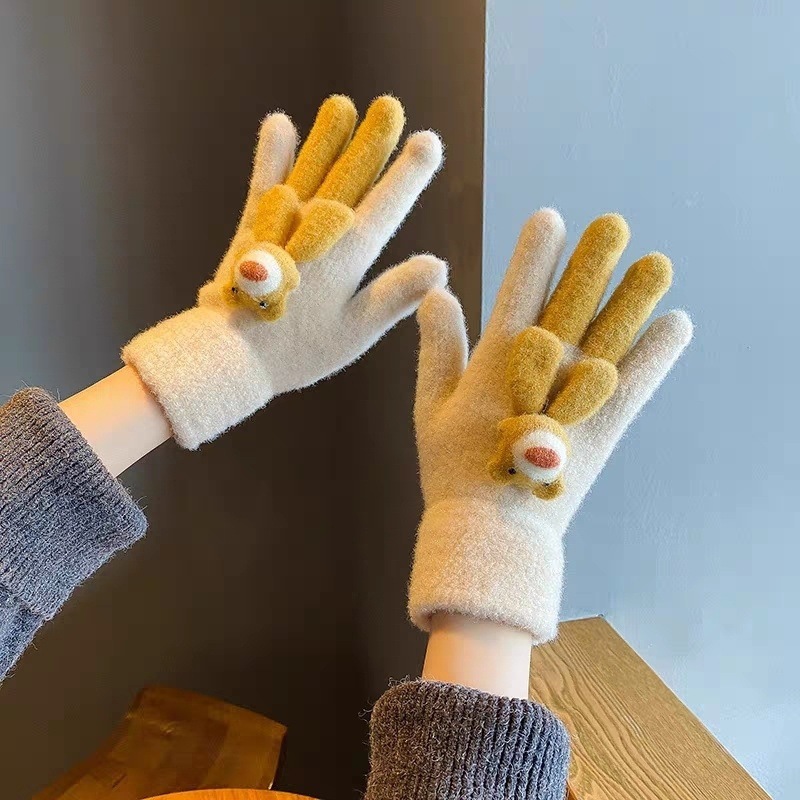 겨울철 여성을 위한 귀여운 곰 만화 두꺼운 따뜻한 터치 스크린 부드러운 소녀 학생 겨울 사이클링 모조 모직 소재 장갑스토어 가기