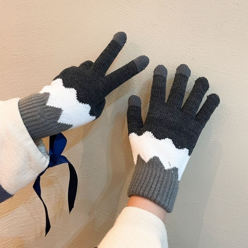겨울철 여성을 위한 귀여운 곰 만화 두꺼운 따뜻한 터치 스크린 부드러운 소녀 학생 겨울 사이클링 모조 모직 소재 장갑