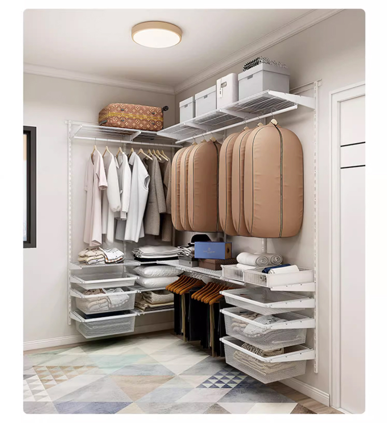 금속 옷장 개방형 옷장은 작은 아파트 침실을 맞춤 설정할 수 있습니다. 간단한 의류 보관 랙 보관 랙