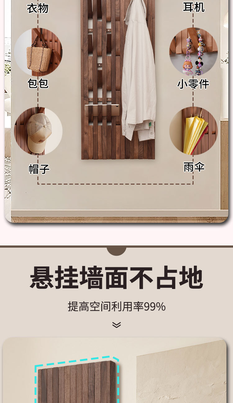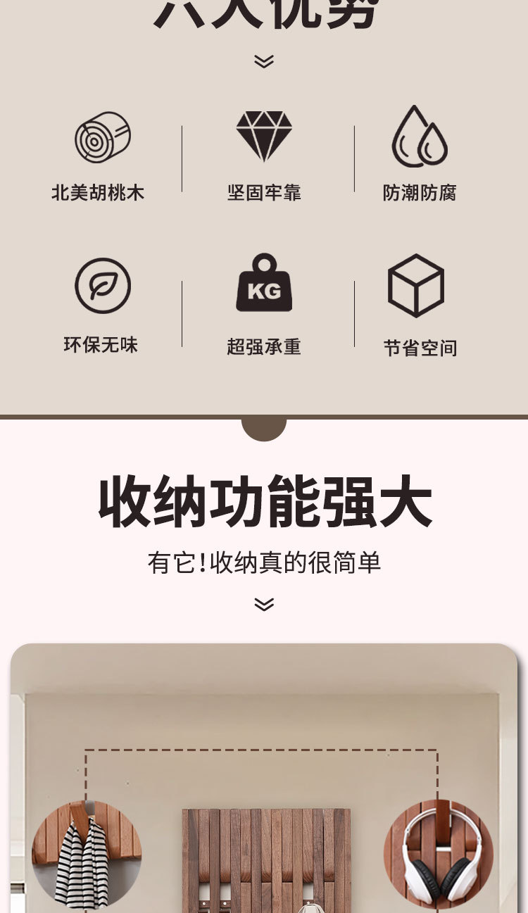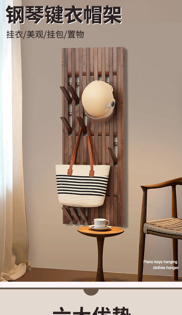 호두 피아노 키 옷걸이 벽걸이형 입구 옷걸이 후크 선반 단단한 나무 옷 걸이