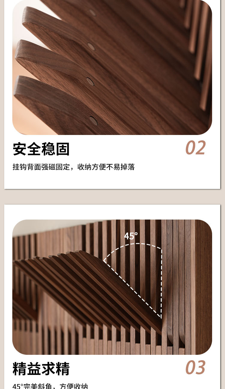 • 6겹, 8열, 48후크 - 북미 블랙월넛 - 수직버전