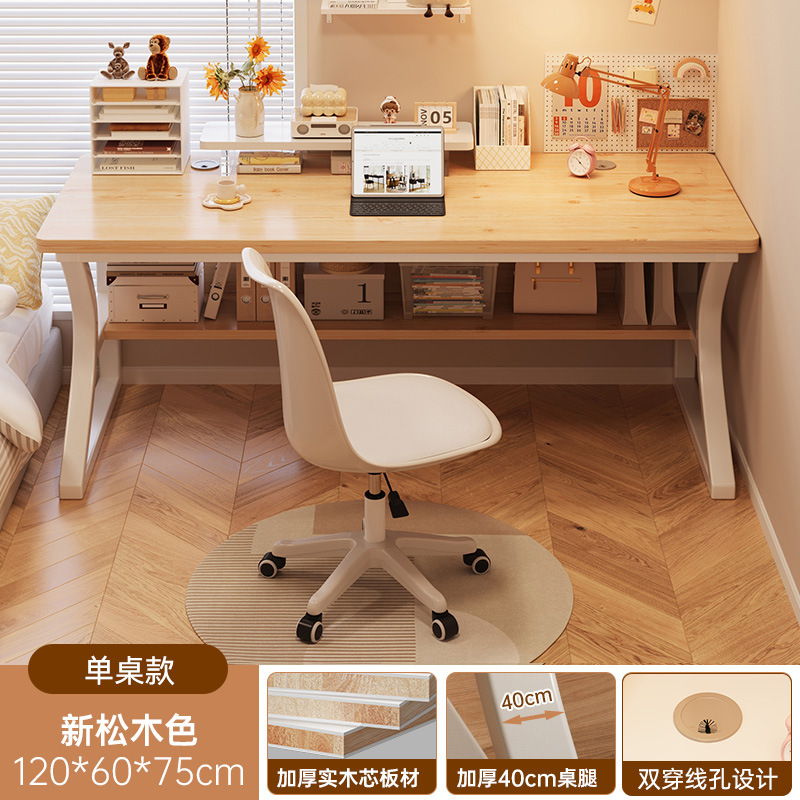 • [원목 생태보드 + 책장 언더테이블] 뉴파인 + 화이트 선반 120*60cm