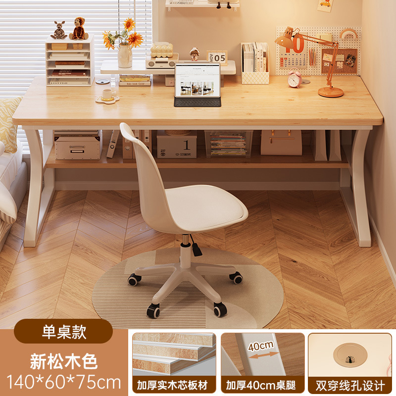 • [원목 생태보드 + 책장 언더테이블] 뉴파인 + 화이트 선반 140*60cm