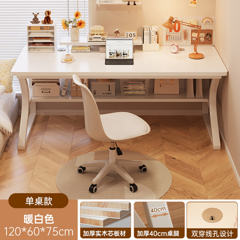 • [원목 생태보드 + 책장 언더테이블] 밀크화이트 + 화이트 선반 120*60cm