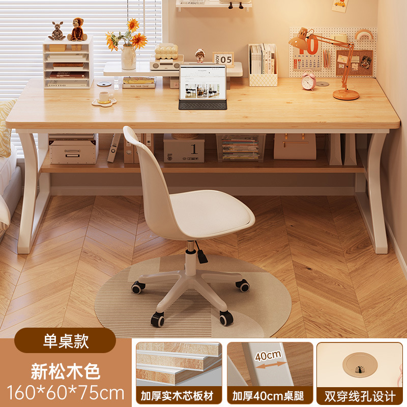 • [원목 생태보드 + 책장 언더테이블] 뉴파인 + 화이트 선반 160*60cm
