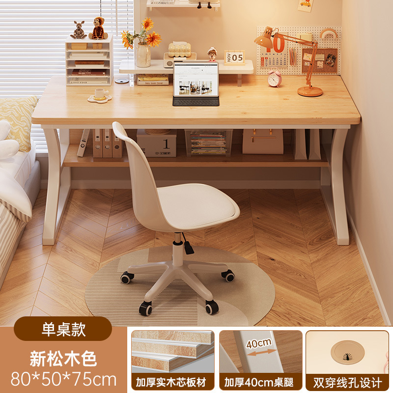 • [원목 생태보드 + 책장 언더테이블] 뉴파인 + 화이트 선반 80*50cm