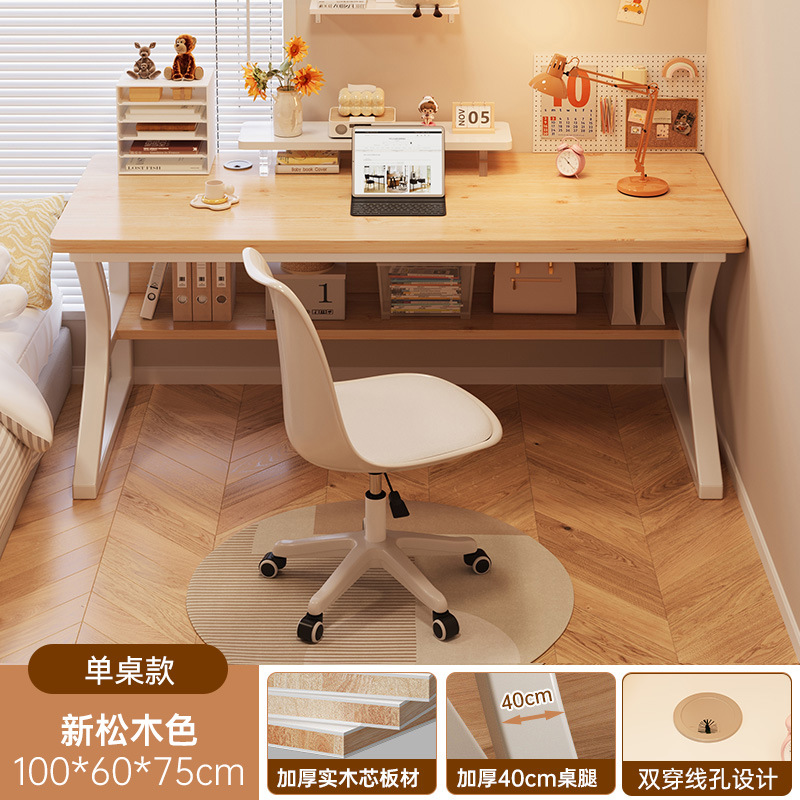 • [원목 생태보드 + 책장 언더테이블] 뉴파인 + 화이트 선반 100*60cm