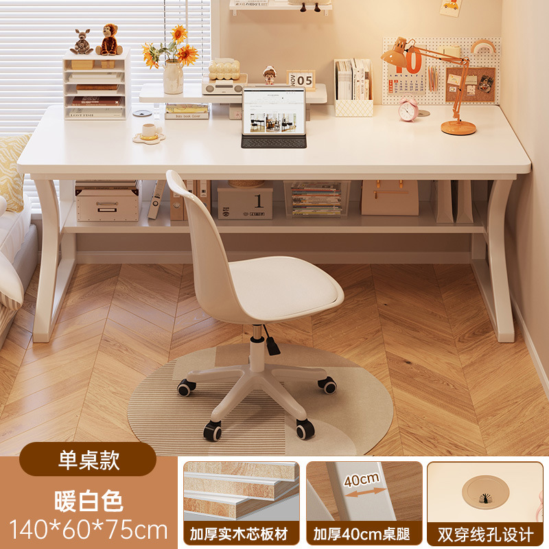 • [원목 생태보드 + 책장 언더테이블] 밀크화이트 + 화이트 선반 140*60cm