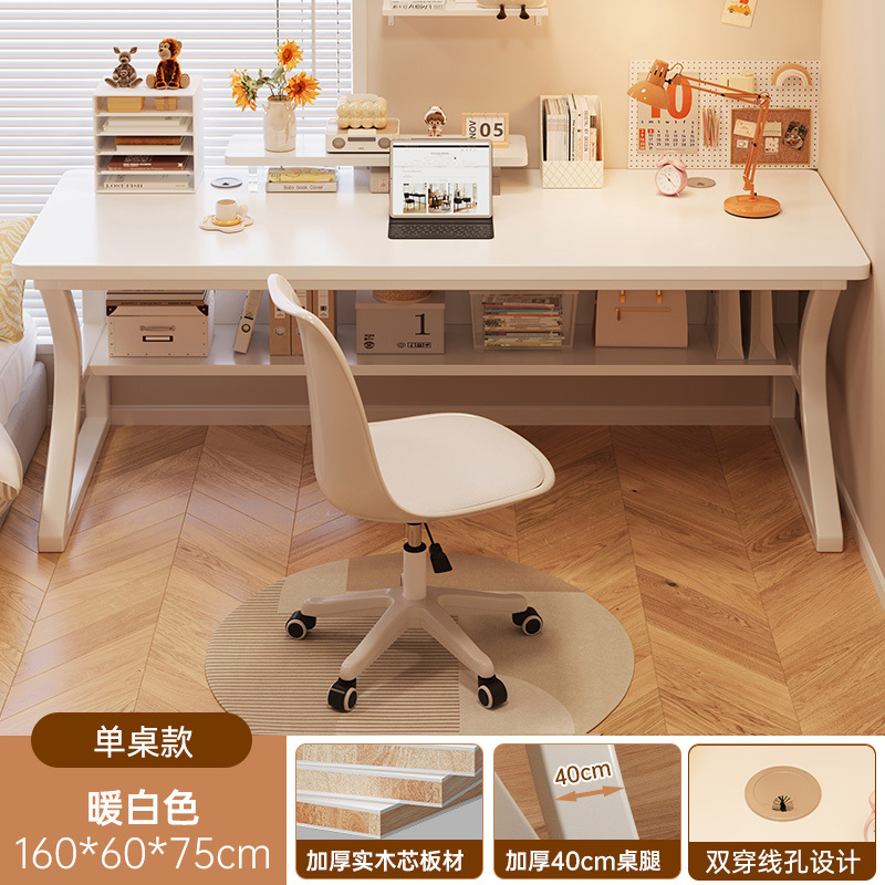 • [원목 생태보드 + 책장 언더테이블] 밀크화이트 + 화이트 선반 160*60cm