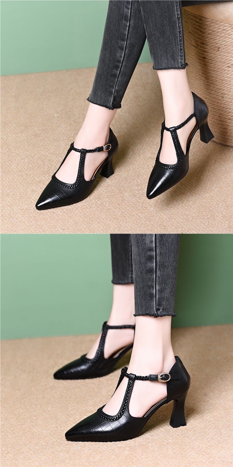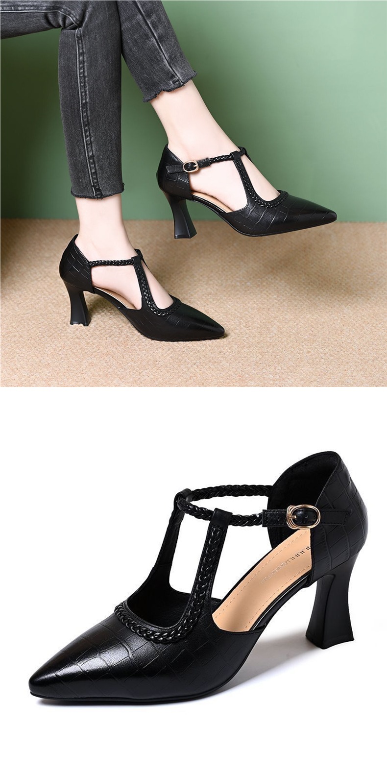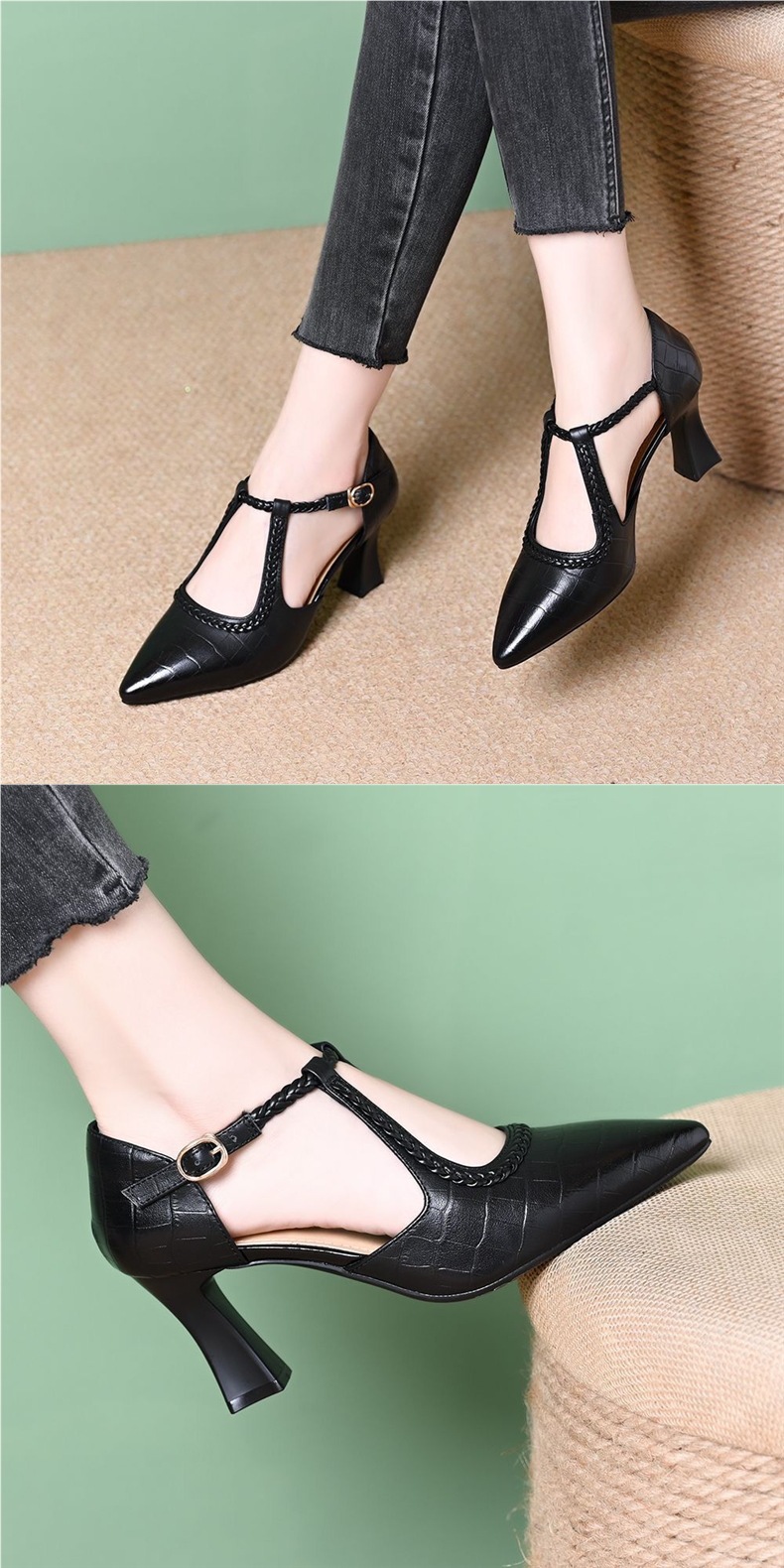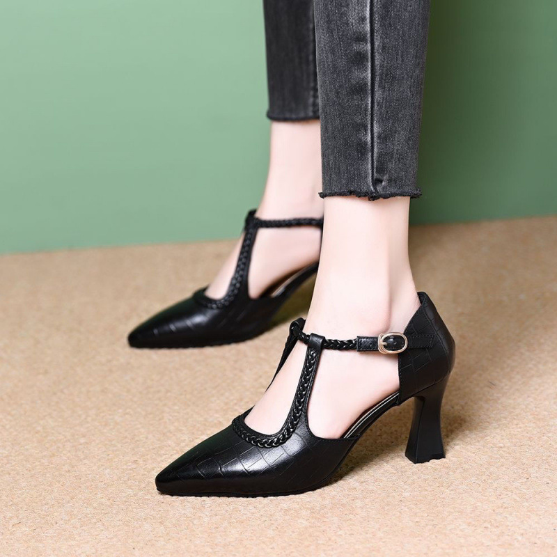 대외 무역 크로스보더 다재다능한 패셔너블한 여성용 하이힐 토캡 샌들, 두꺼운 굽, 프렌치 복고풍 스톤 패턴, 우아한 여름 여성 신발스토어 가기