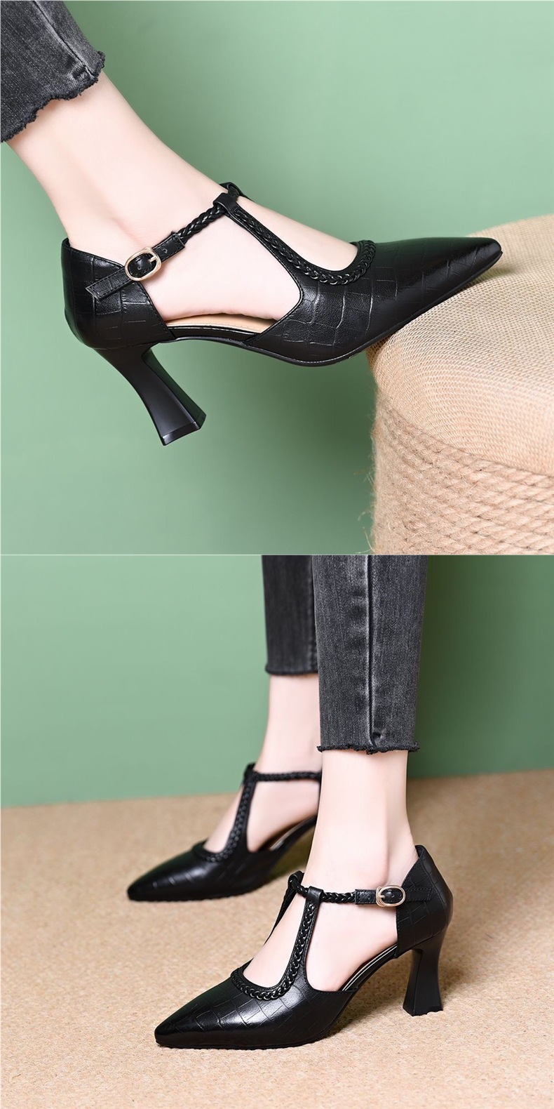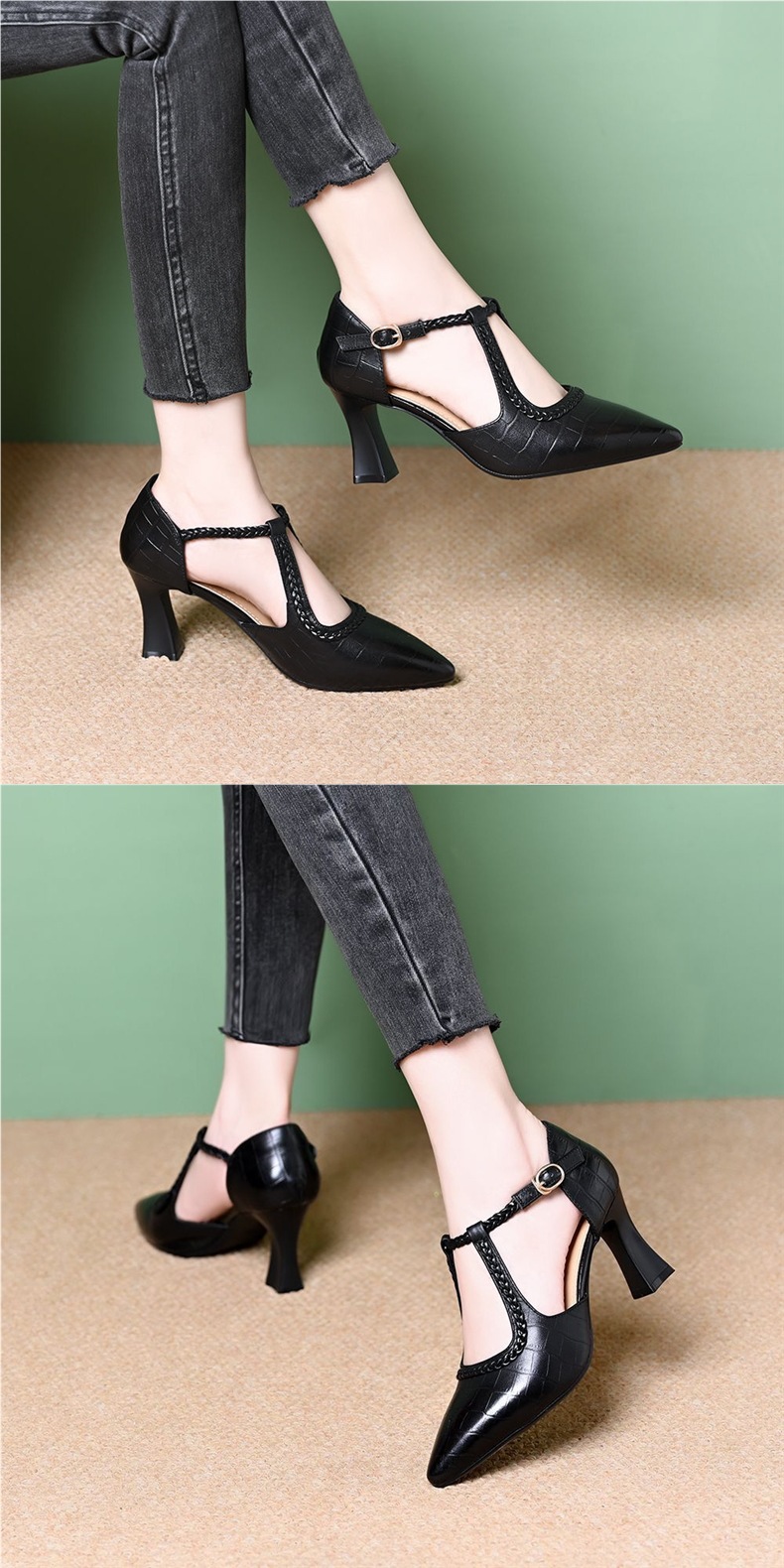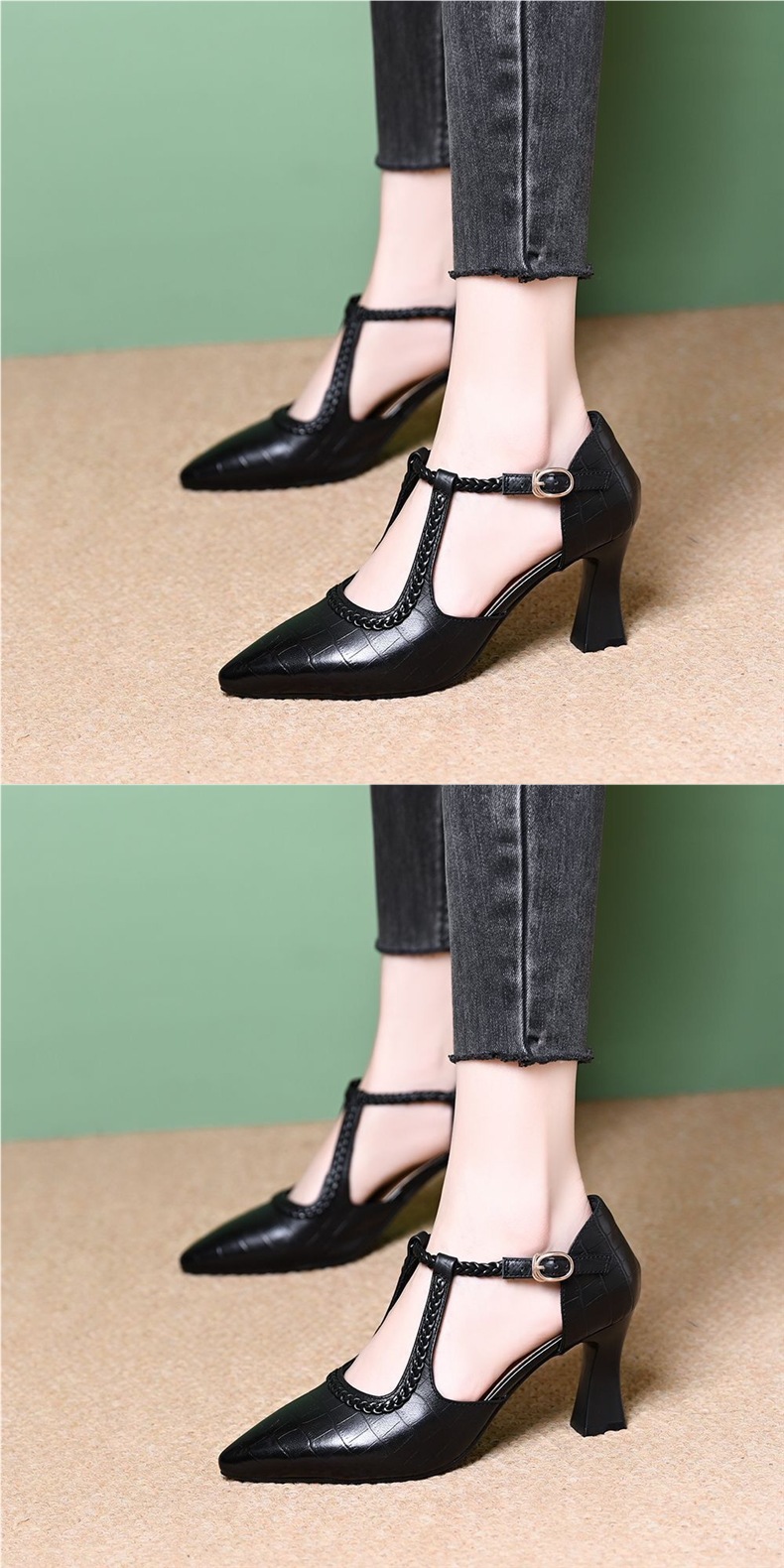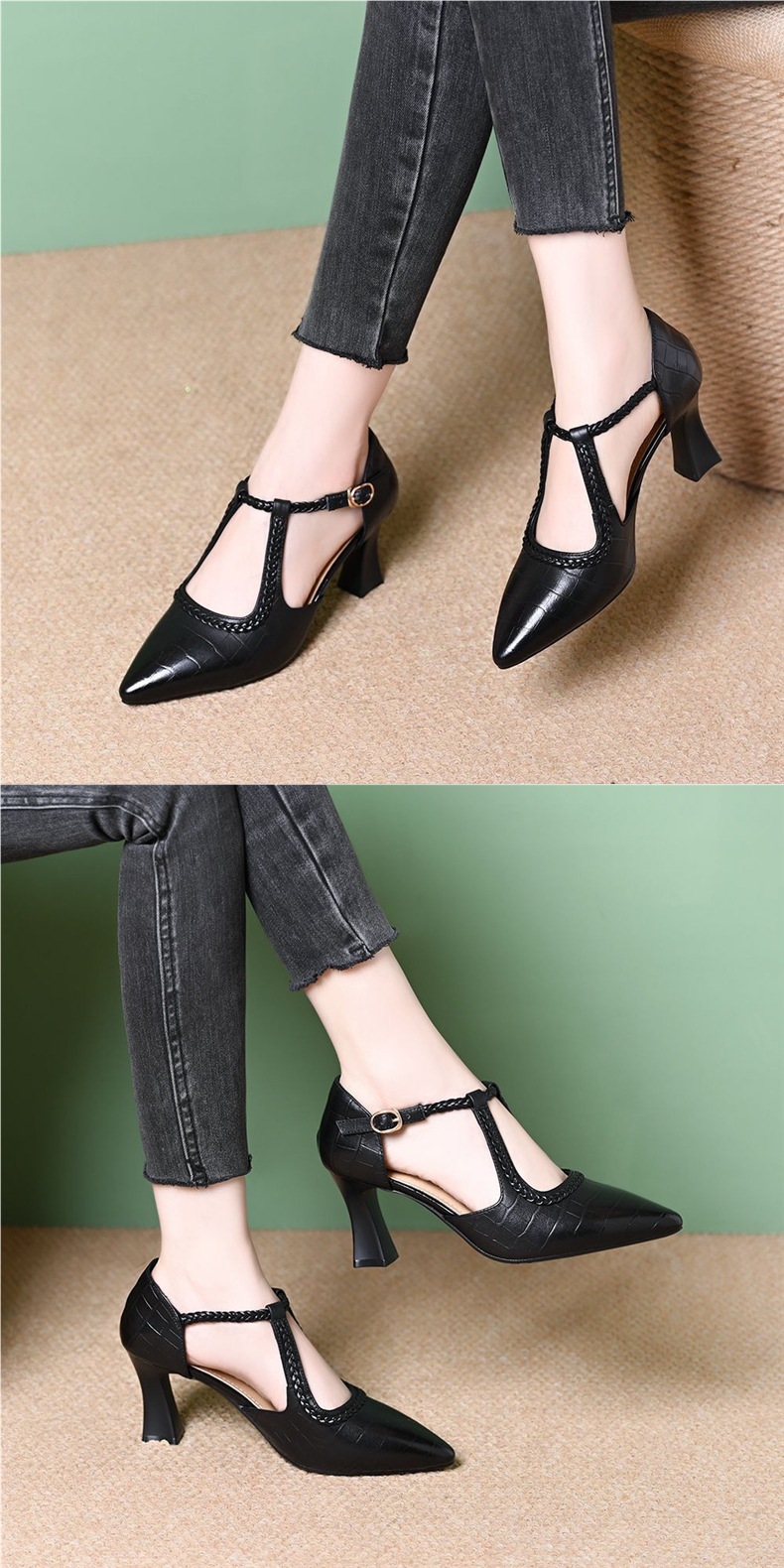 대외 무역 크로스보더 다재다능한 패셔너블한 여성용 하이힐 토캡 샌들, 두꺼운 굽, 프렌치 복고풍 스톤 패턴, 우아한 여름 여성 신발스토어 가기