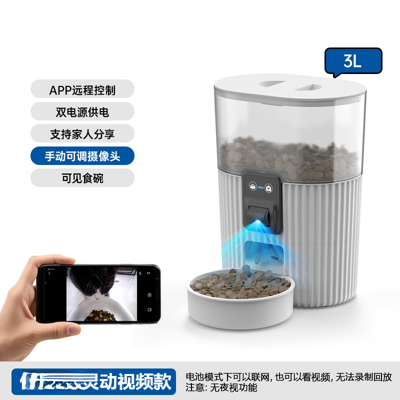 고양이를 위한 자동 애완동물 급식기, 고양이 사료 및 개 사료를 정량화하고 정기적으로 공급하는 기계, 비디오를 이용한 차세대