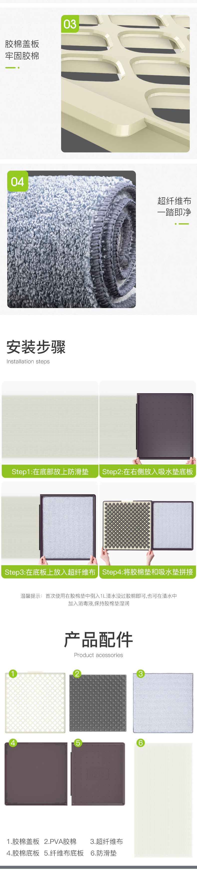 • 펀매트 밑창 청소 바닥 매트 그레이 프리 섬유천