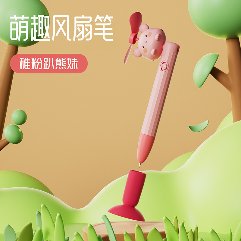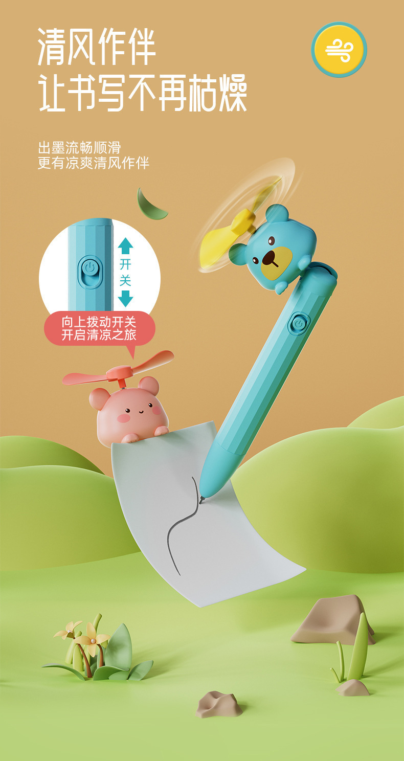 • 귀여운 곰부채펜 [블루+핑크] 각 1개
