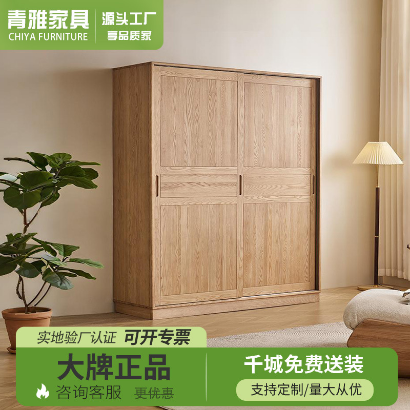 원목 미닫이 옷장, 가정용 침실용 화이트 애쉬 목재 미닫이문 대형 옷장 수납장 슬라이딩 도어 캐비닛